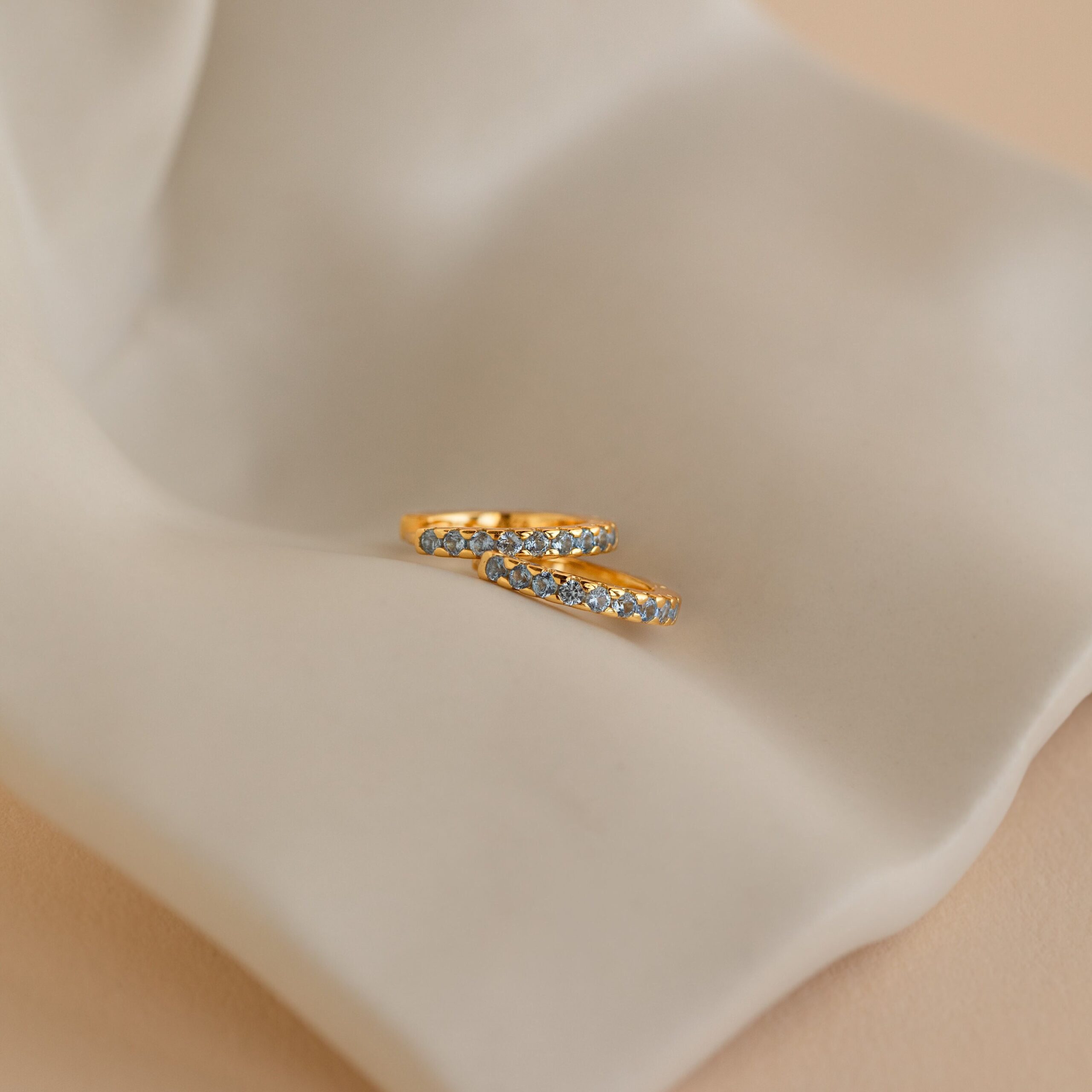 Our Aquamarine Huggie Earrings are delicate and lightweight for when you need something to add a little extra shimmer. Wear these blue diamond hoop earrings in your first or second piercing to create the perfect earring stack.