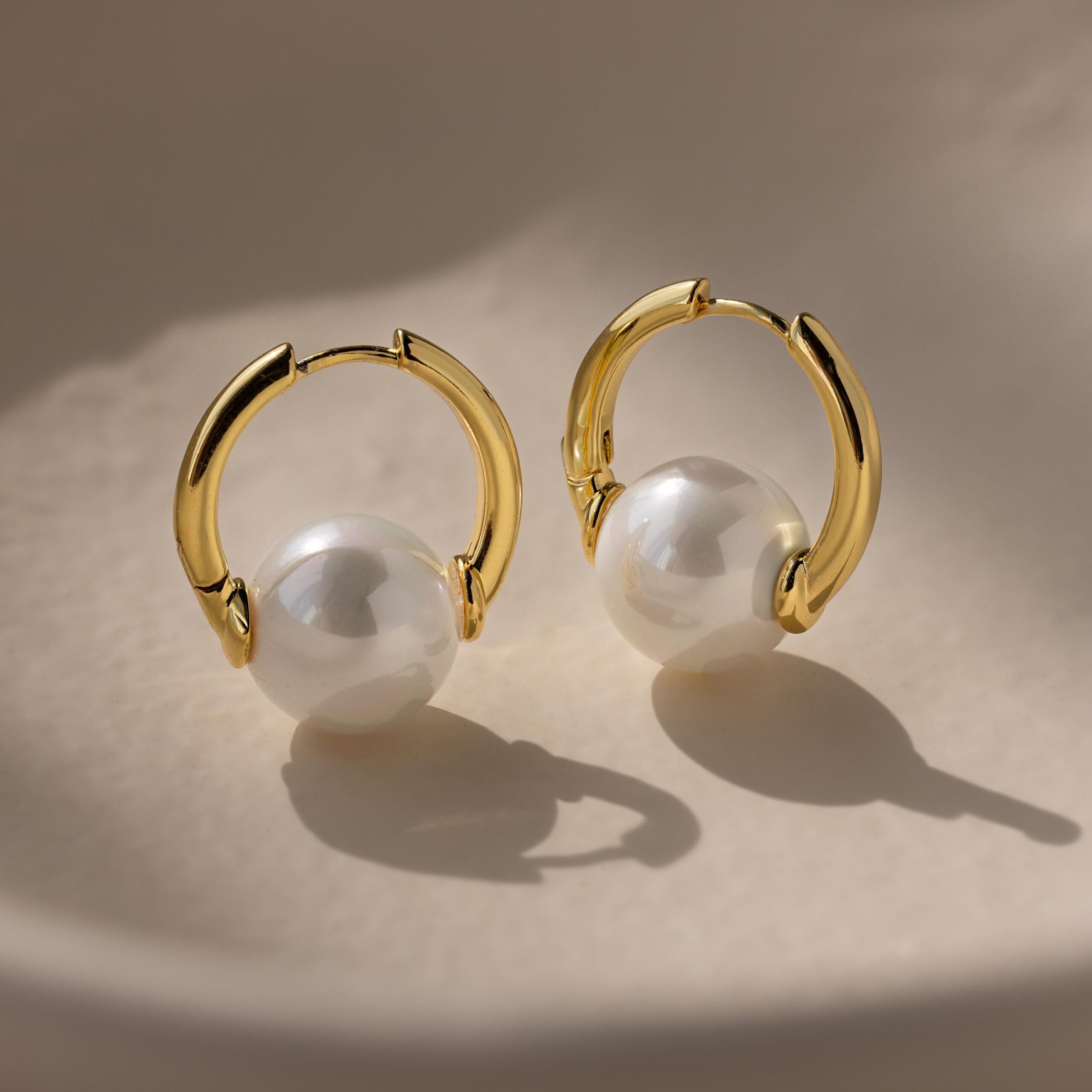 A modern twist on a timeless classic, these bold pearl hoops blend sculptural curves with luminous elegance. Designed to make a statement, they effortlessly elevate any look from simple to sophisticated.✨