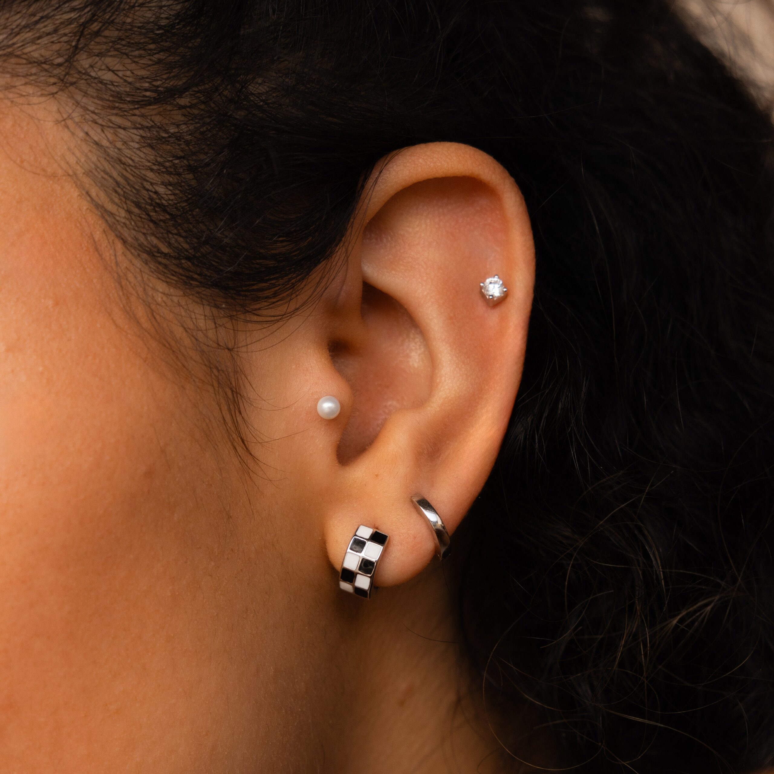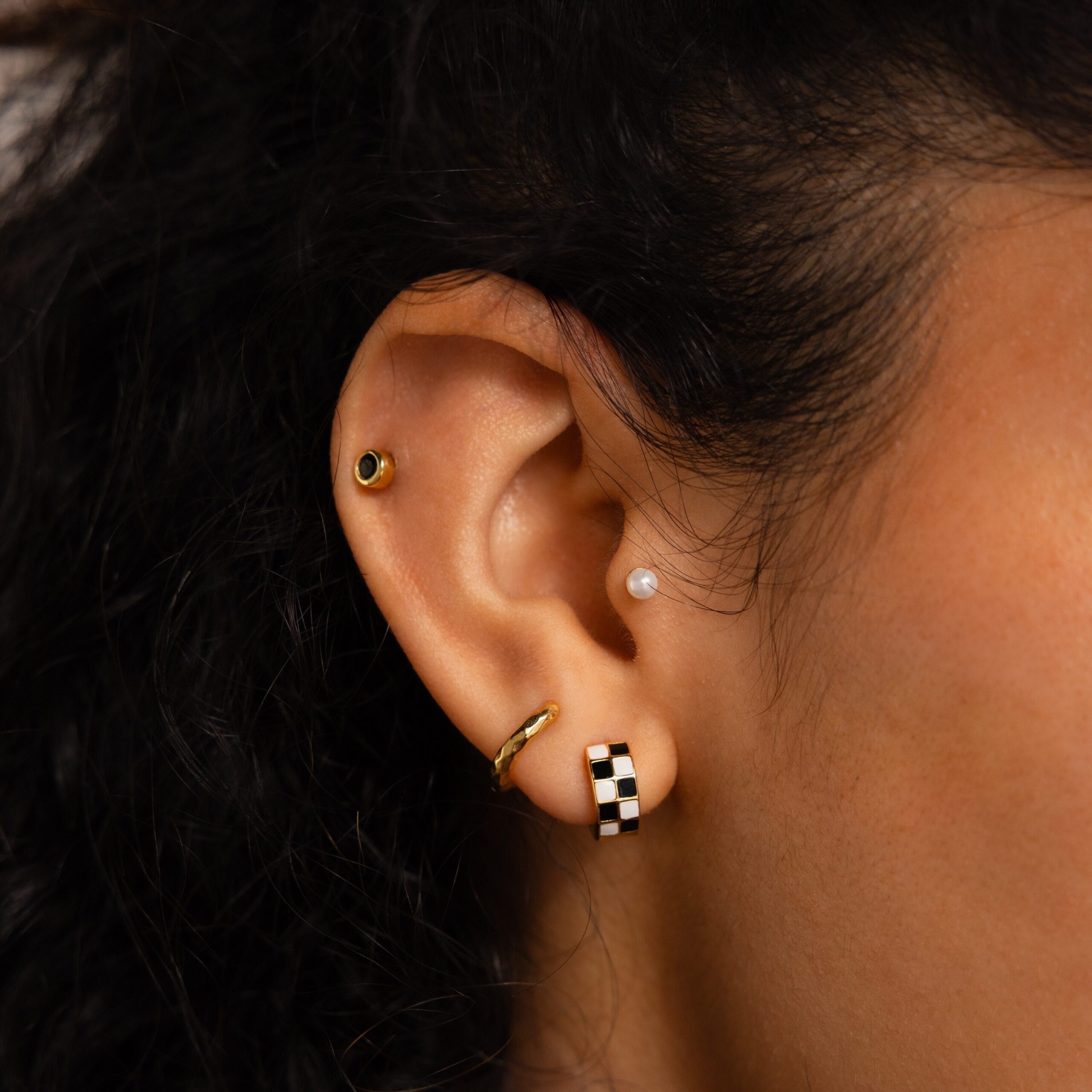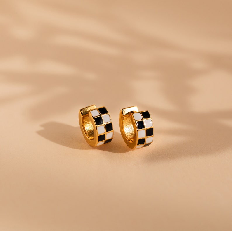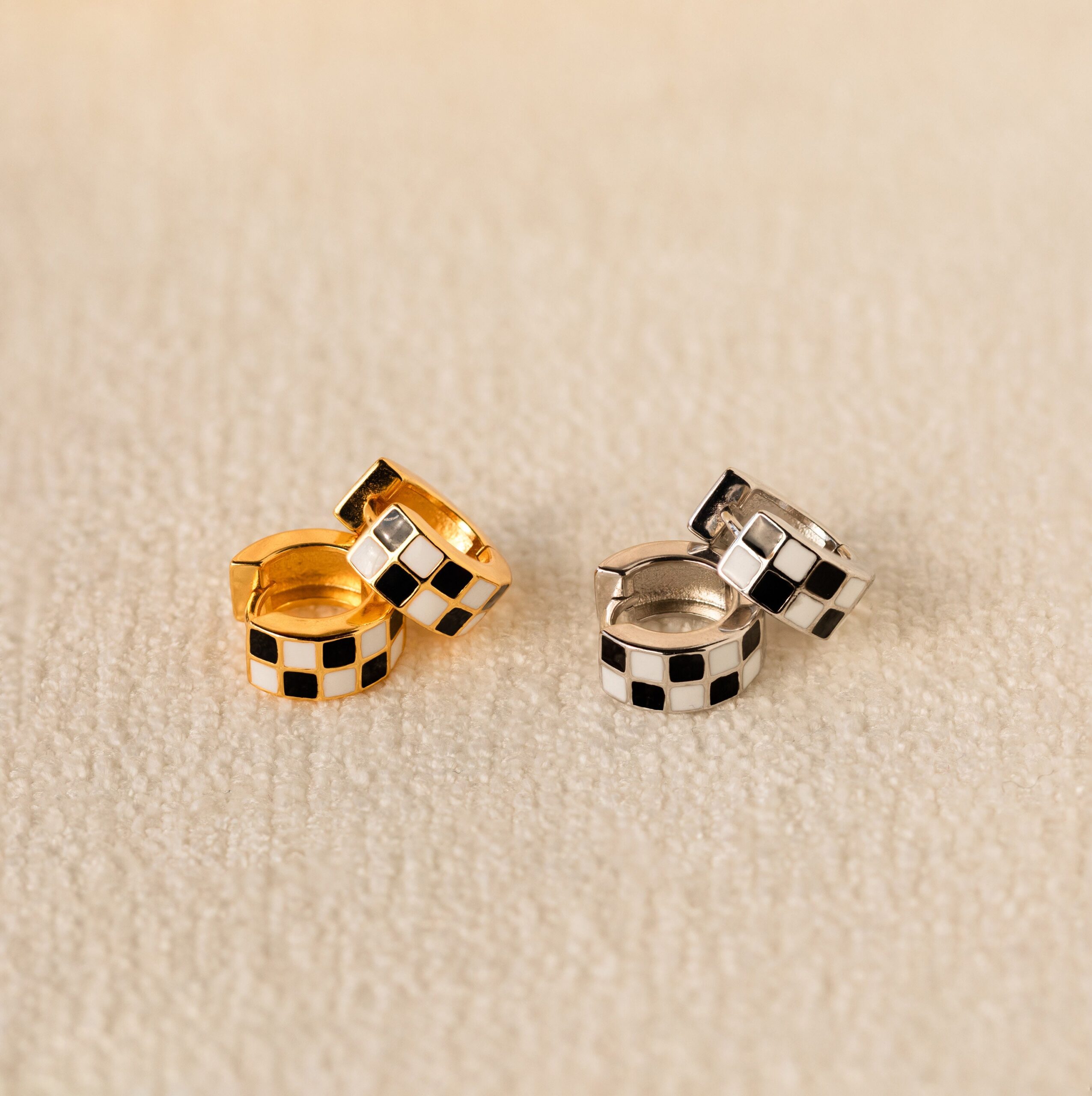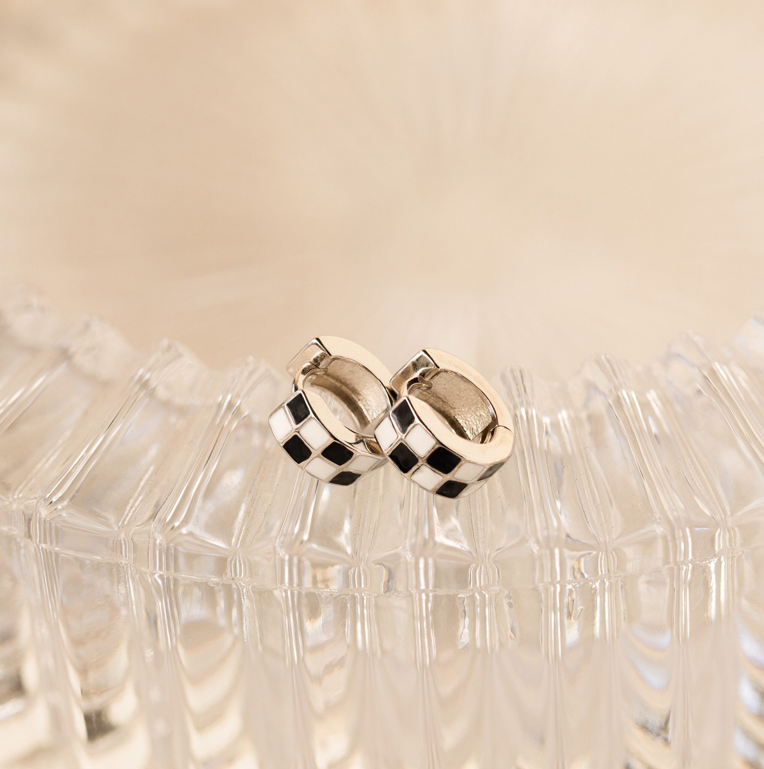 Elevate your style with our Checkered Huggie Hoops – thick, black and white earrings boasting a retro flair that effortlessly blends vintage class with modern charm. Make a bold statement with these unique hoop earrings, the perfect accessory to showcase your style ♡