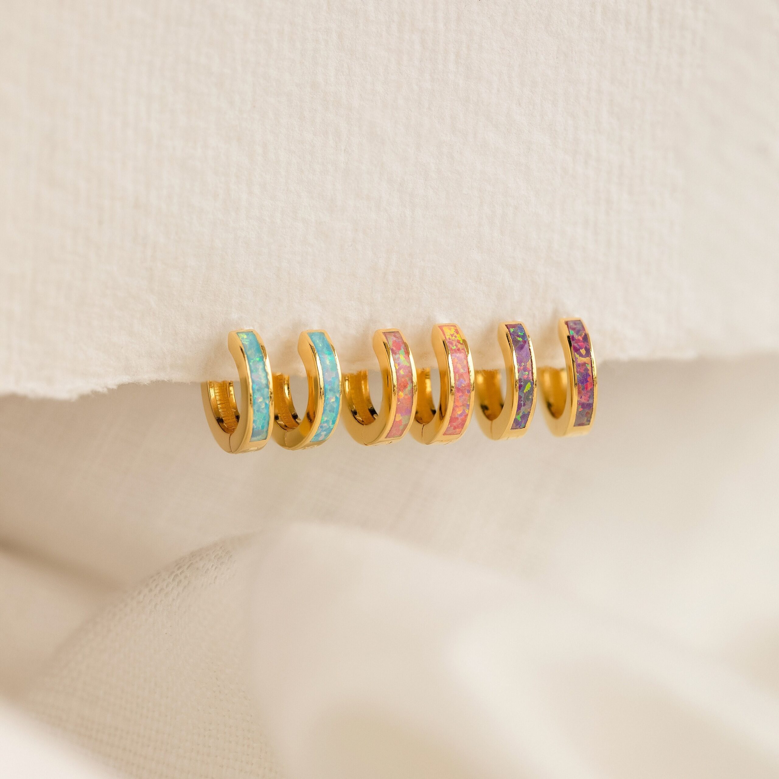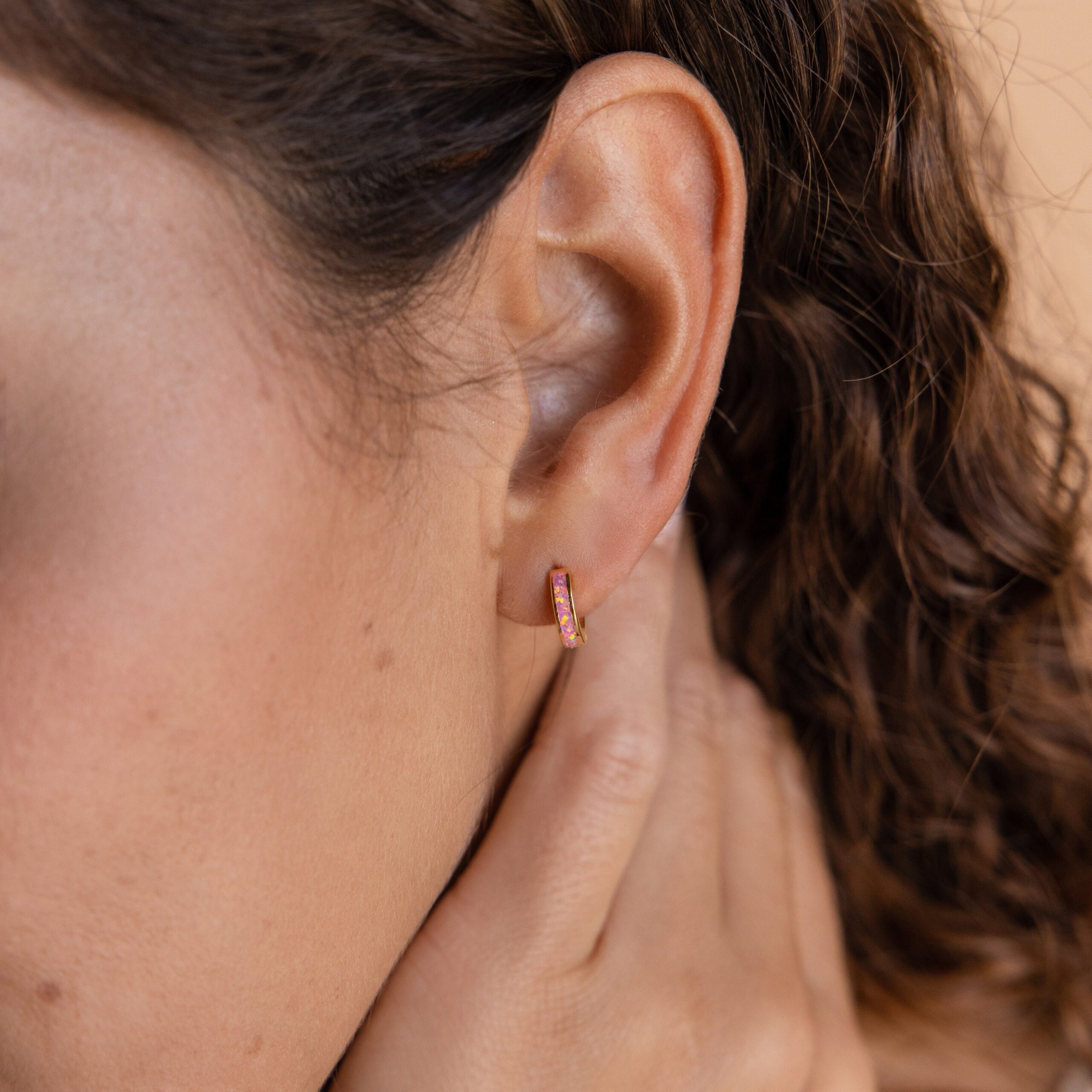 Effortlessly enhance your everyday jewelry collection with our Light Pink Opal Inlay Huggies, infused with a vibrant burst of color and distinctive charm. These inlay huggie hoop earrings feature captivating pink opal accents, making them a unique and beautiful gift for loved ones ♡