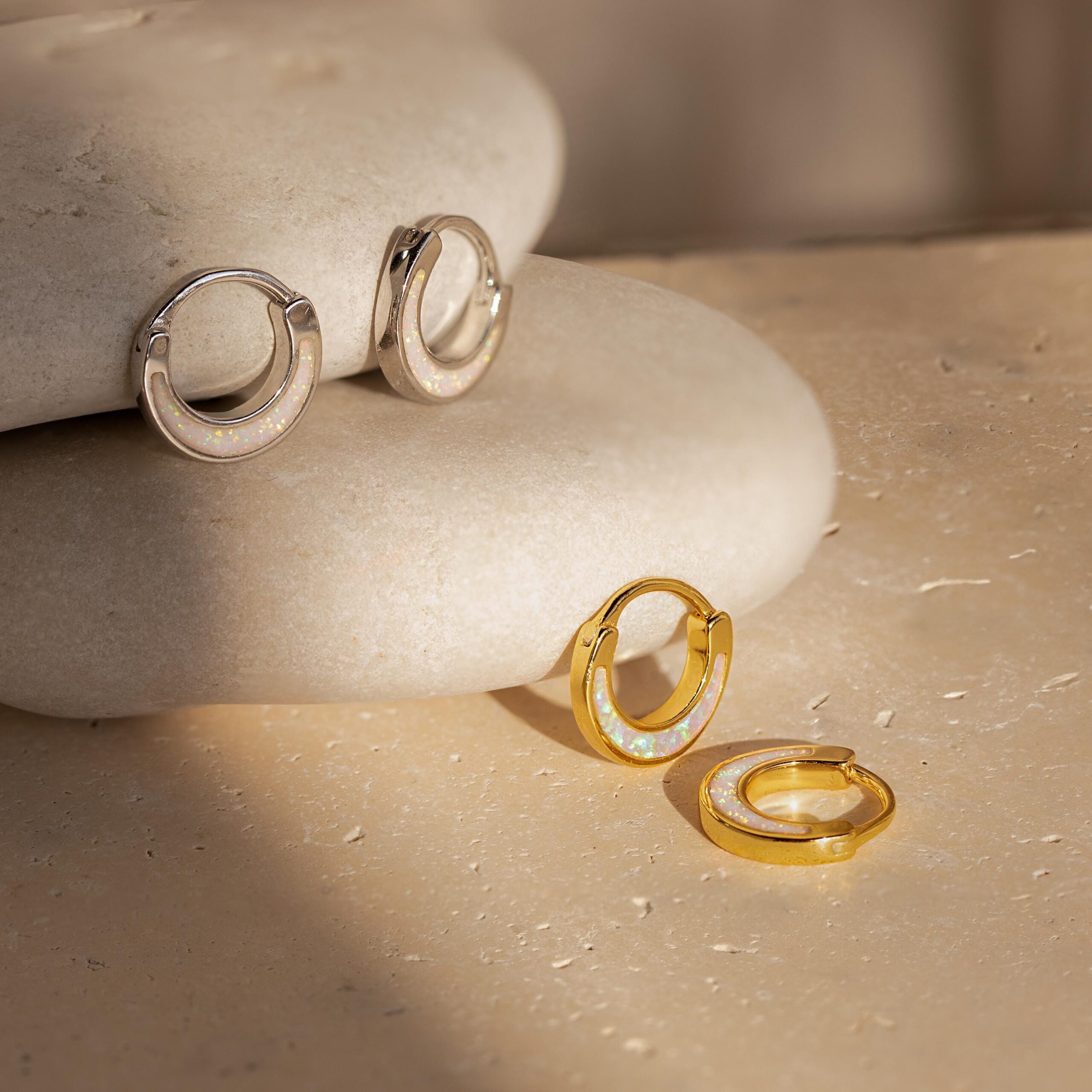 • Featuring Dainty Opal Huggie Hoops | Sold as a Pair