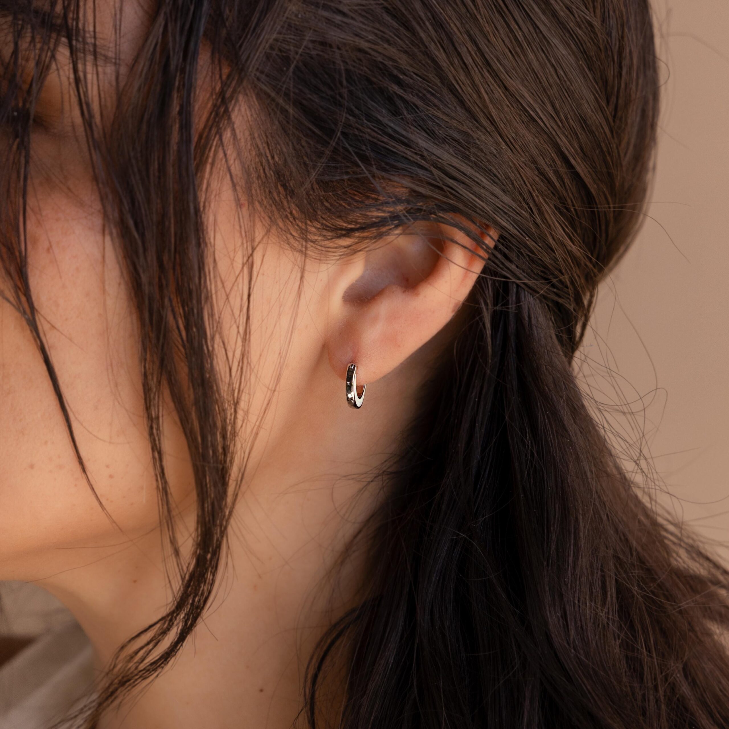 Opal Moon Huggies by Caitlyn Minimalist • Dainty Hoop Earrings • Helix Cartilage Huggie Earrings • Silver Jewelry • Birthday Gift • ER345