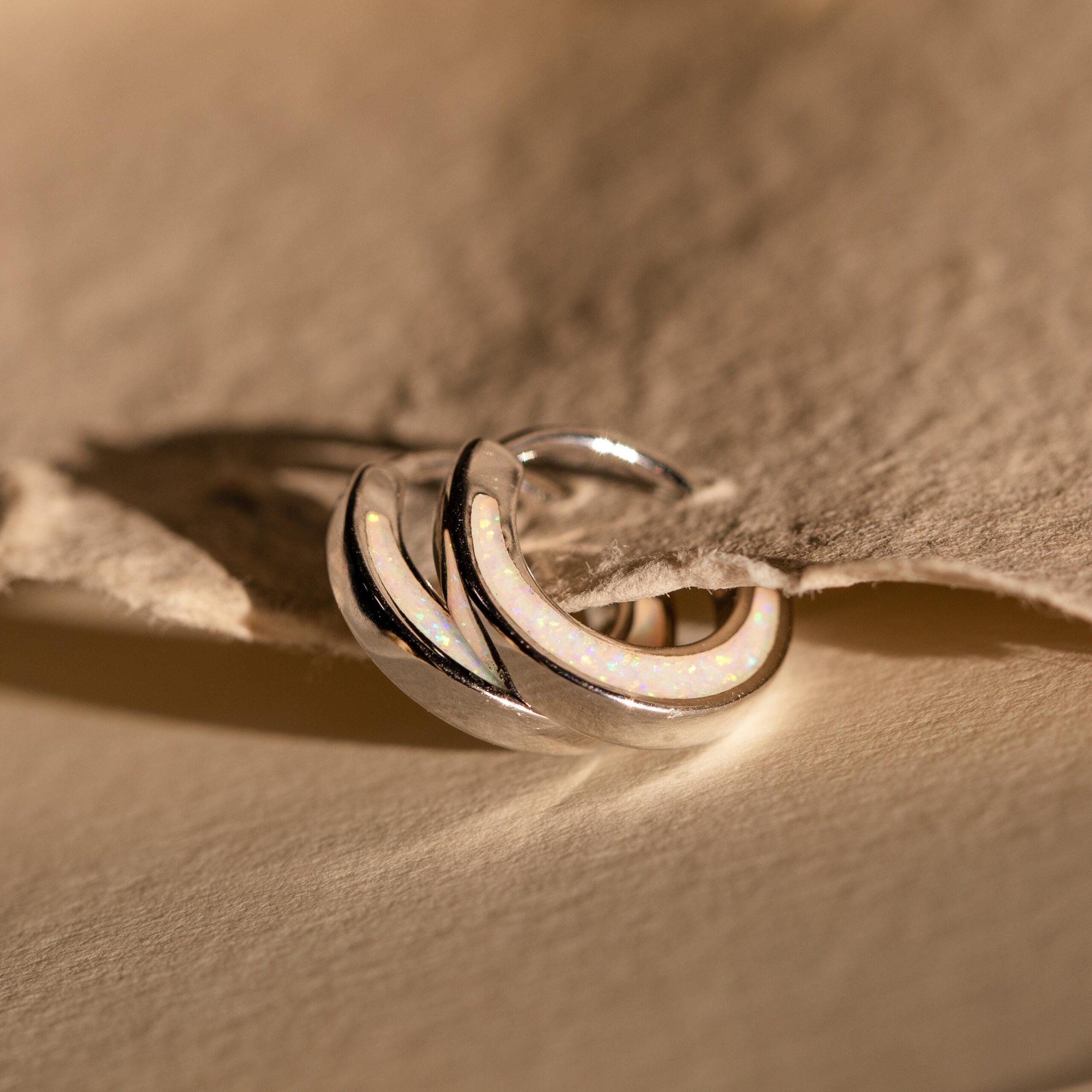 Our Half Moon Opal Hoops allow for the beauty of the Opal Gemstone to be fully visible. With the Opal Inlayed on the side of the earring, the gemstone is on full display. Wear these huggie hoop earrings to your first day of school or for your first day on the job and you will surely get noticed.