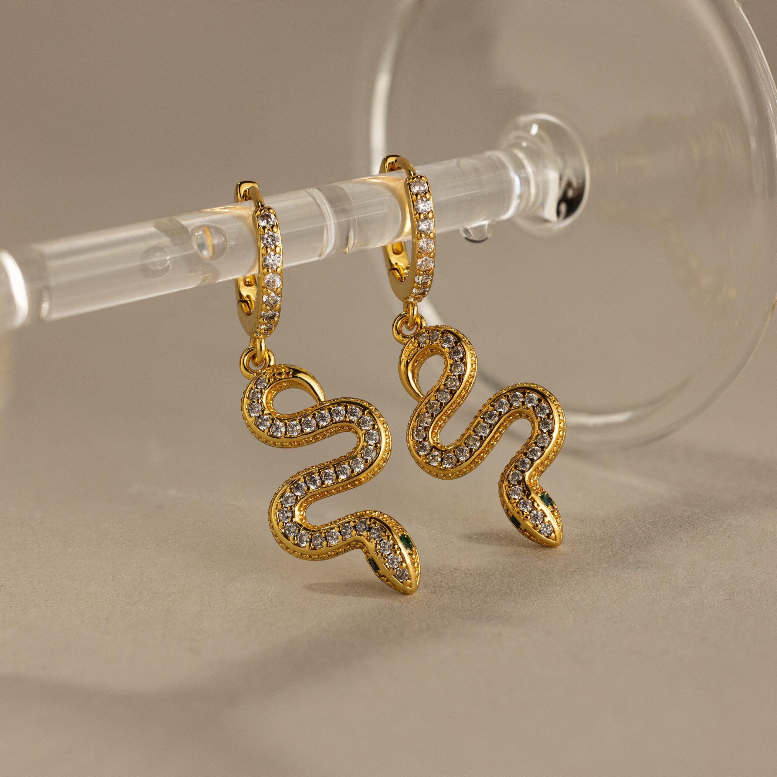 Elevate your style with our Pave Snake Charm Huggies. These dazzling dangling diamond hoop earrings feature intricate snake charms adorned with sparkling gemstones, making them a bold statement piece. Perfect as a birthday gift for her or a luxurious treat for yourself, these earrings blend edgy sophistication with timeless elegance!