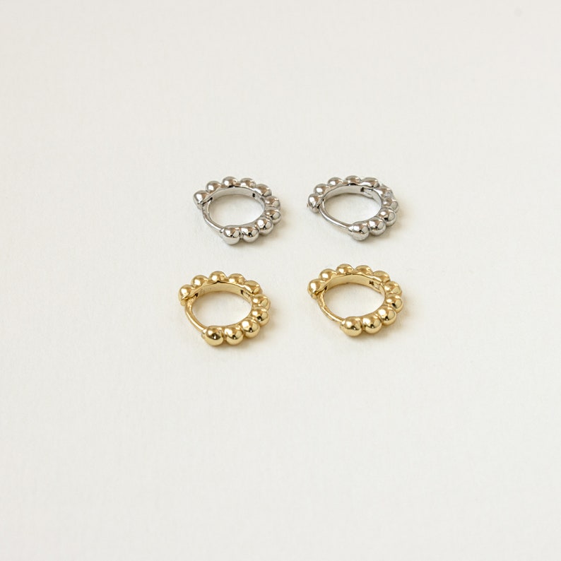Sphere Huggie Earrings • Beaded Earrings • Huggie Hoop Earrings in Gold & Silver • Dainty Hoops • Minimalist Earrings • Gift for Her • ER134