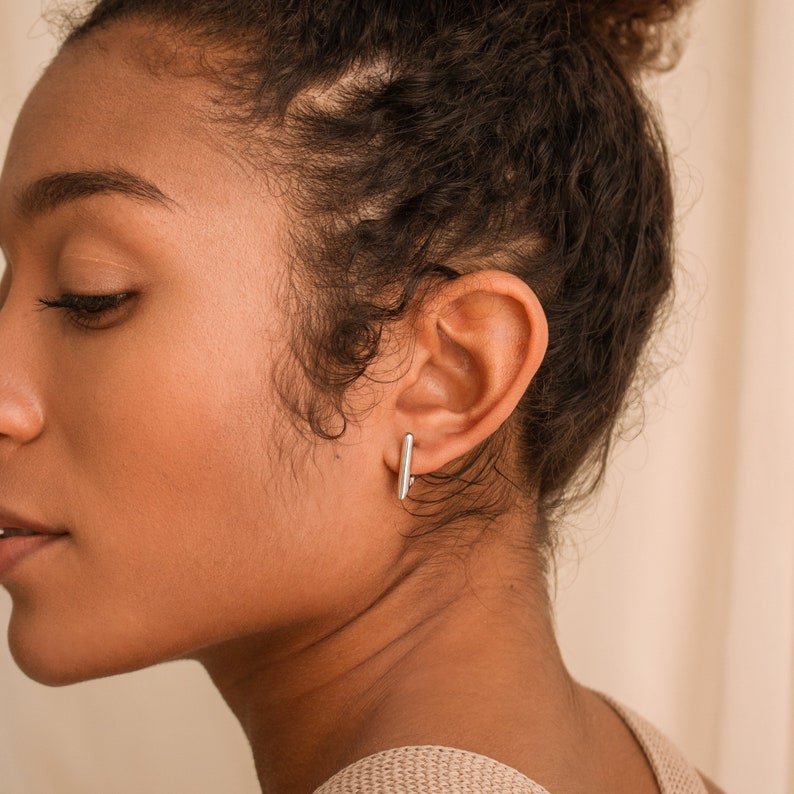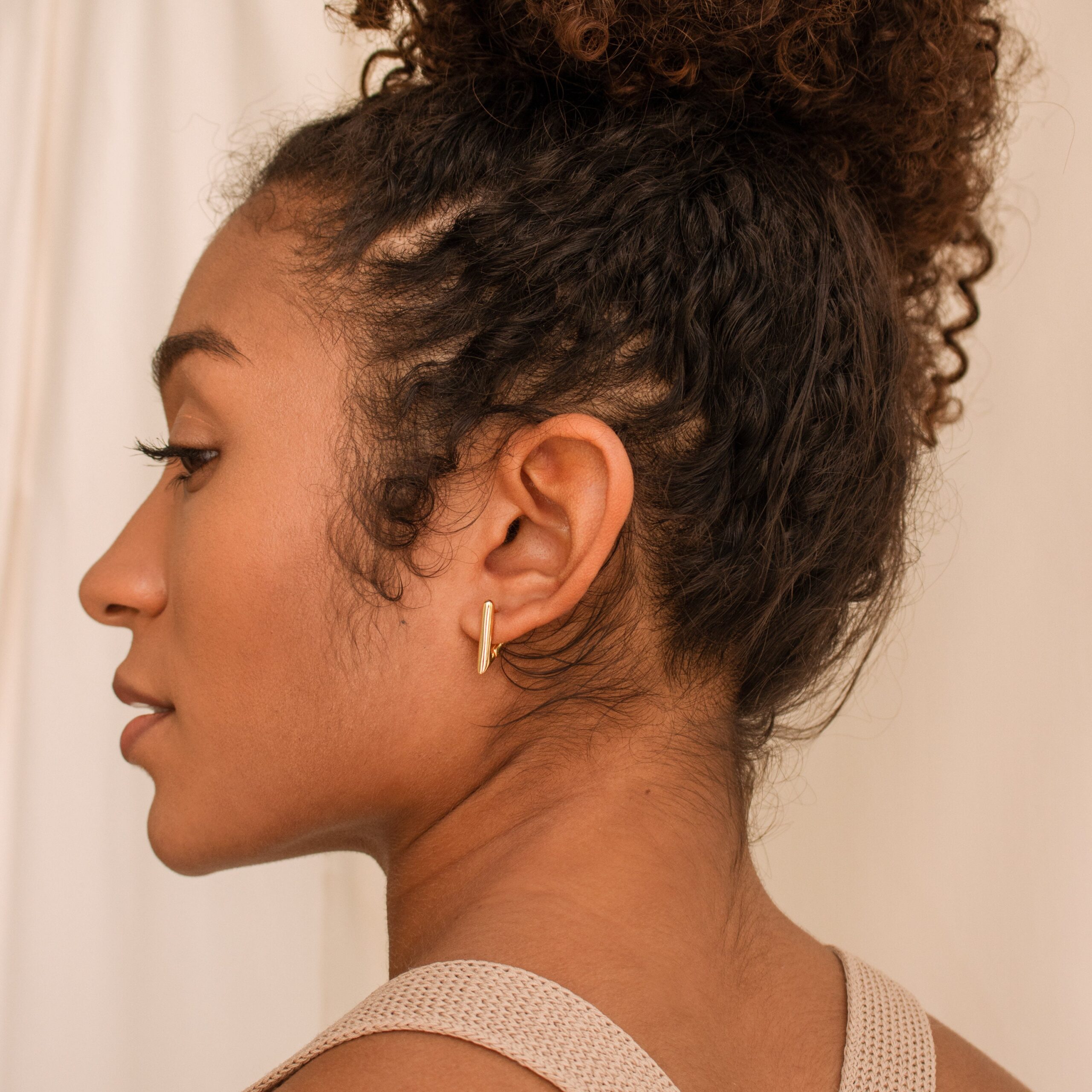 Add a bit of modern edge to your outfit with our Triangle Huggies. These unique geometric earrings show off your summer style and make for a perfect complement for a bikini and an oversized linen shirt cover-up!