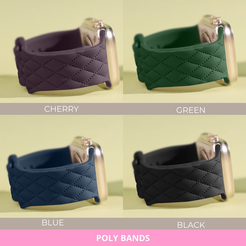 Accessorize your Apple Watch with the chic Poly Bands collection. Crafted from premium stitched pattern silicone for lasting comfort. Their stylish perforated design is both breathable and fashionable, making them suitable for any occasion. Swap colors to match your mood or outfit!