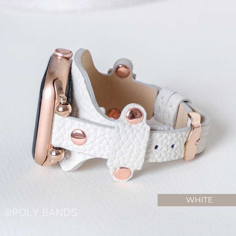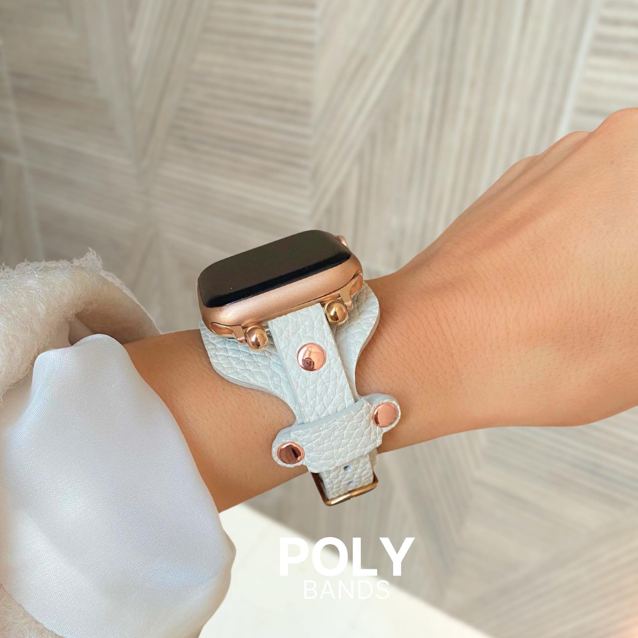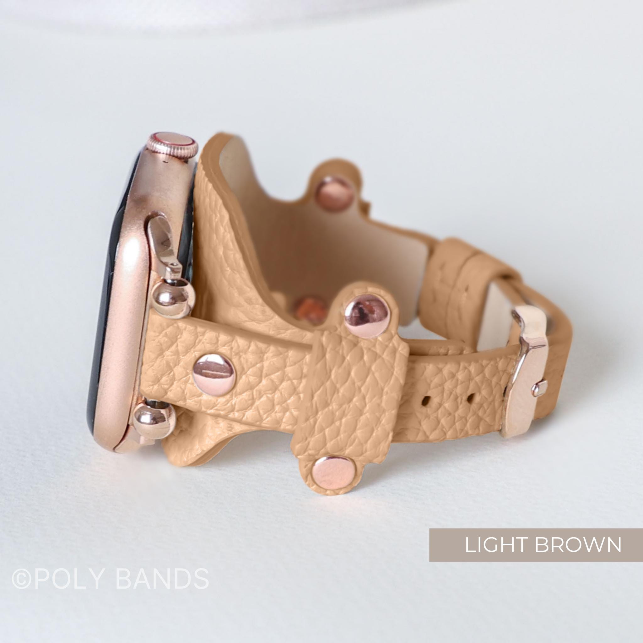 This textured leather Watch band with rivets is the perfect blend of style and comfort. The adjustable strap ensures a secure fit, making it ideal for everyday wear or special occasions. Add a touch of elegance to your smartwatch with this timeless design!