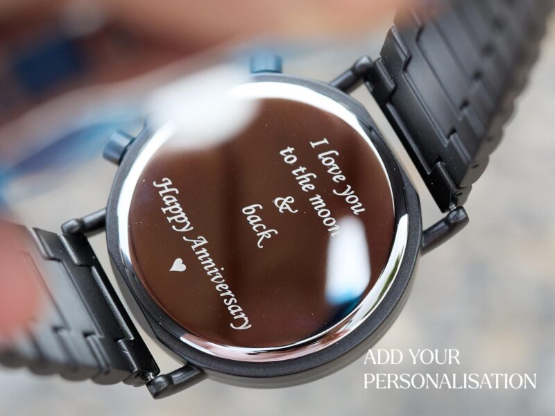 ما يميز هذه الساعة هو خيار النقش المخصص، الذي يتيح لك حفر رسالة شخصية أو تاريخ مميز على سطحها. سواء كانت هدية لعيد ميلاد، ذكرى سنوية، أو لمناسبة خاصة، تضيف هذه اللمسة الشخصية قيمة عاطفية وتحولها إلى تذكار ثمين يدوم طويلًا.
