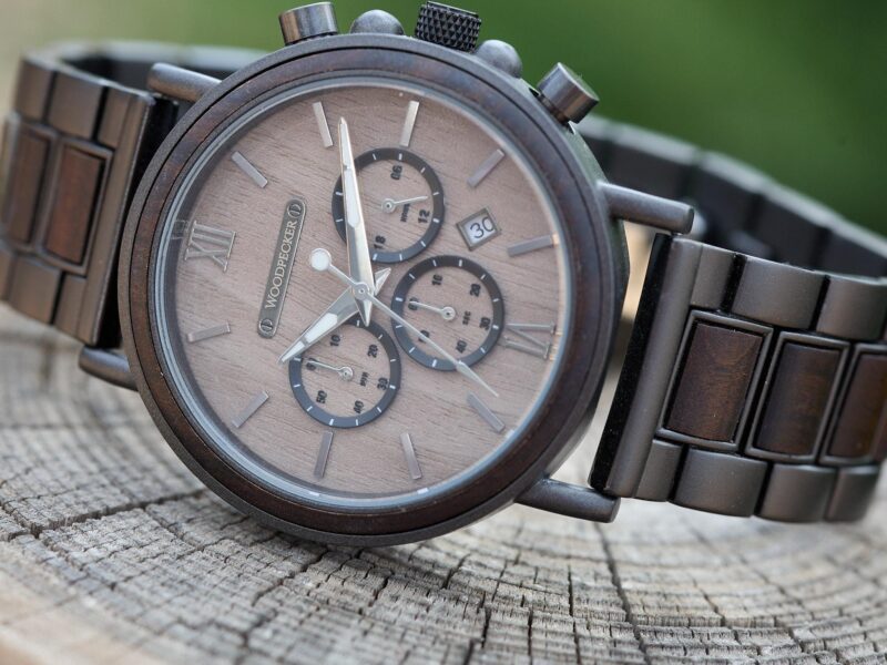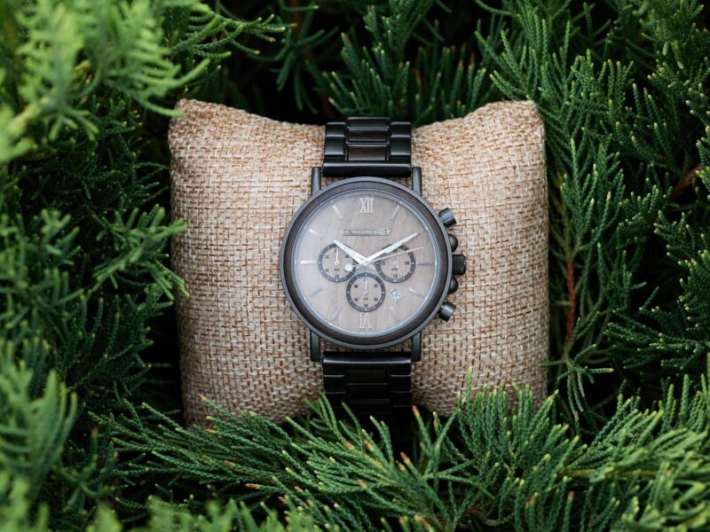 ساعة خشبية رجالية منقوشة، هدية شخصية للذكرى.