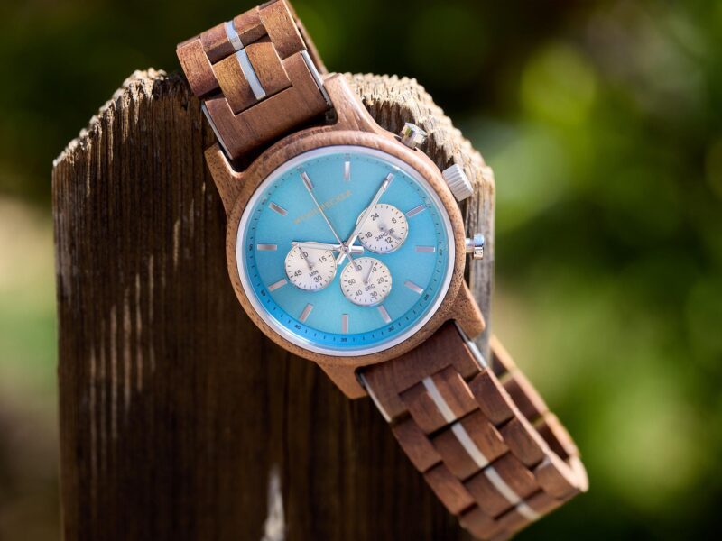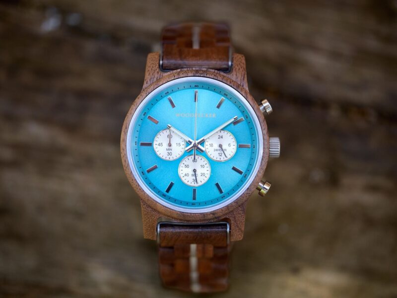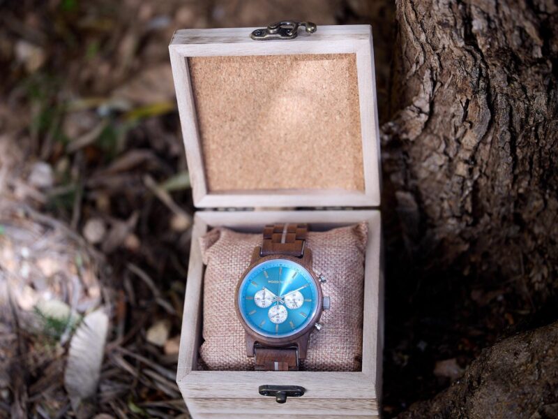 هل تريد أن تجعل من تهديها له يبتسم؟ لا داعي للبحث أكثر، فهذه الساعة المنقوشة مصنوعة من أجود أنواع خشب الجوز، وتتميز بميناء بلون أزرق فاتح ملفت للنظر وتصميم بسيط يبرز أناقتها. تحتوي الساعة أيضًا على عدة مؤشرات فرعية ووظائف كرونومتر لضمان الدقة.
