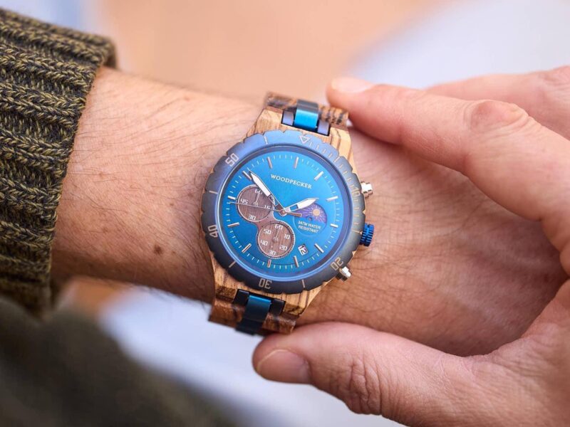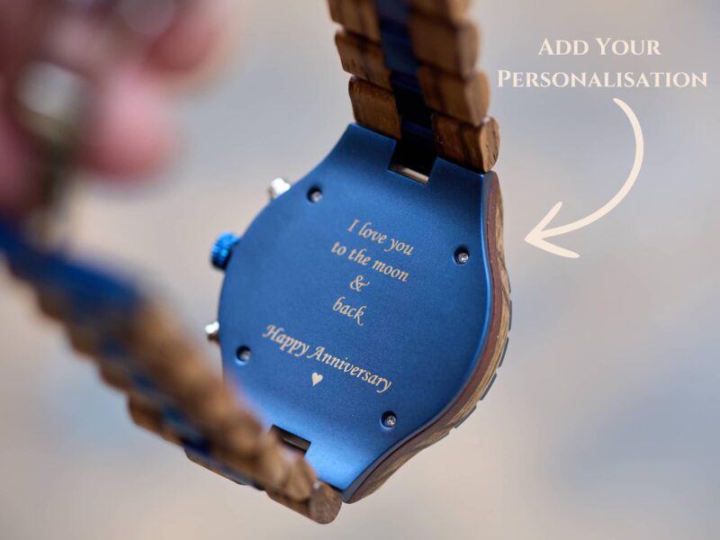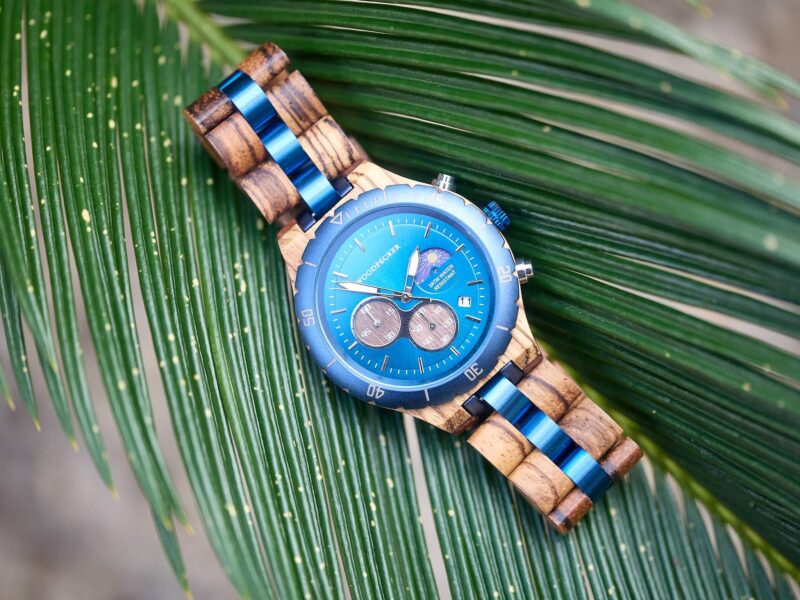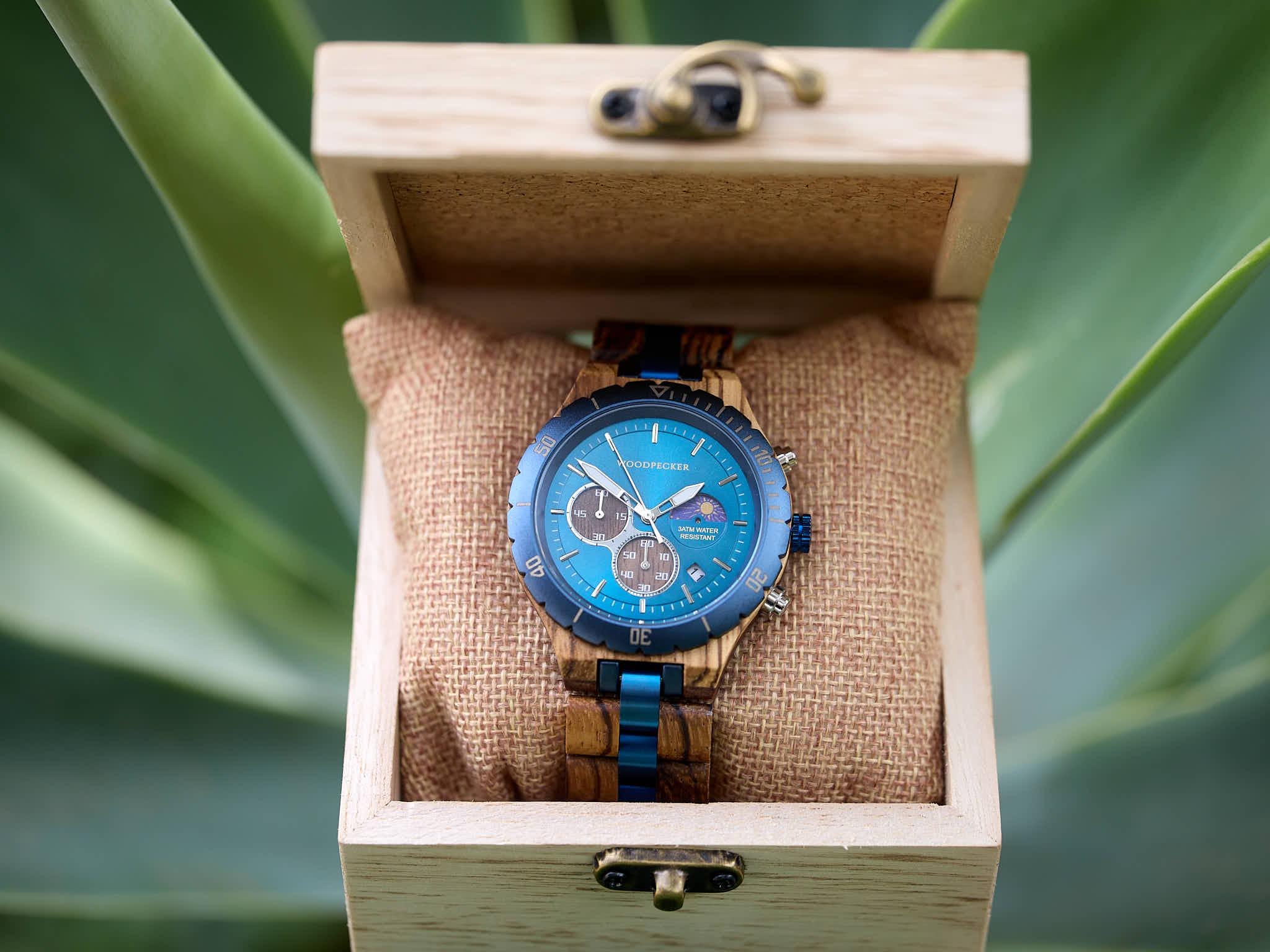 صُنعت هذه الساعة الفاخرة من خشب زيبرافانو المتين، وتتميز بقرص مزود بوظائف كرونوغراف وعرض النهار/الليل. يكتمل مظهرها الراقي بلمسات ستانلس ستيل أزرق كوباوي، مما يجعلها قطعة مثالية لأي شخص يهتم بالأناقة. كما أنها هدية رائعة للاحتفال بالذكرى السنوية أو لأي شخص مميز.