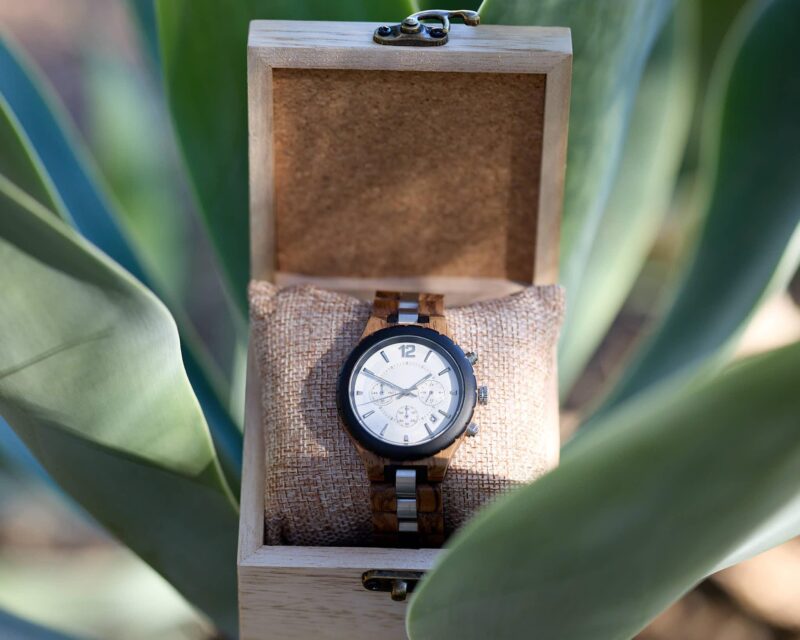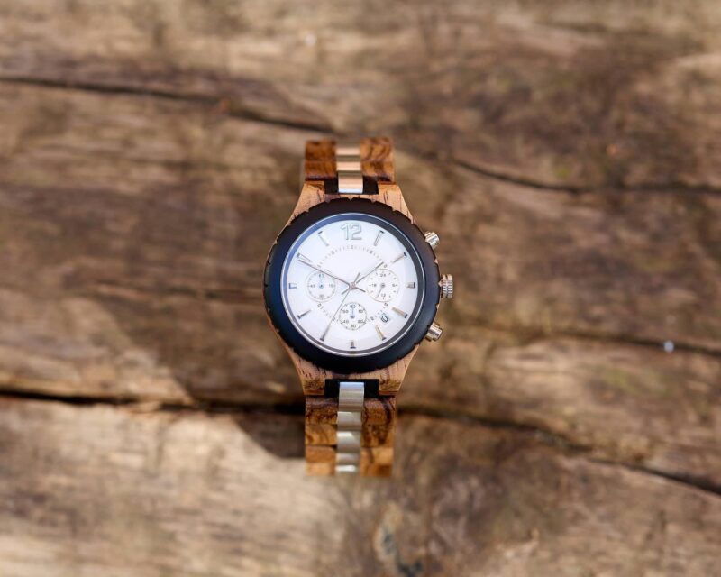 - تصميم فريد: كل ساعة تتميز بلمسة مختلفة بفضل الخطوط الطبيعية لخشب الزبرانو.