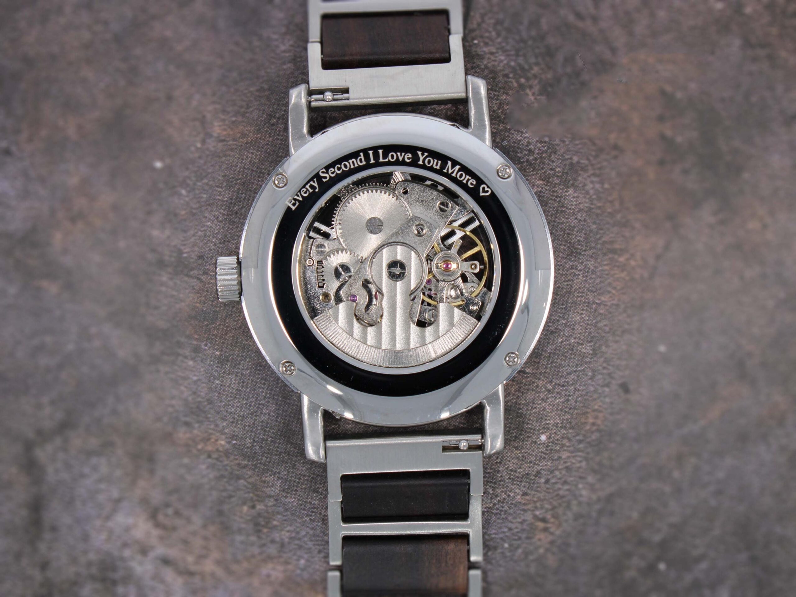 ساعة رجالية خشبية أوتوماتيكية منقوشة، هدية ذكرى أو مناسبة خاصة له.