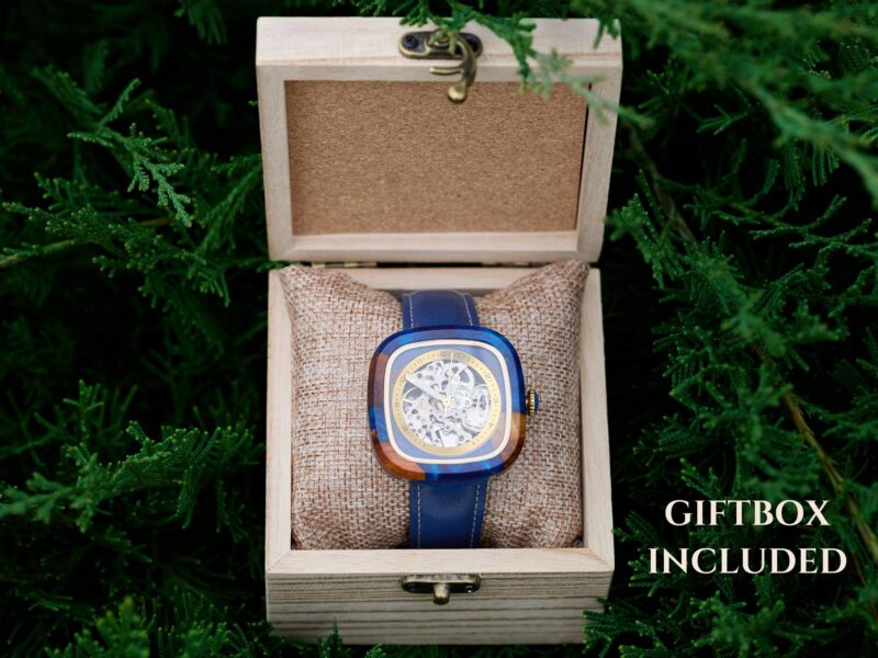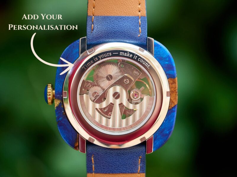 احتفل بالمزيج المثالي بين الفن والتخصيص مع هذه الساعة الرجالية الفاخرة، المصنوعة من خشب الزيتون الطبيعي مع لمسات الراتنج الأزرق الساحر. بفضل آليتها الأوتوماتيكية، تجمع هذه الساعة بين الأناقة العصرية وسحر الطبيعة لتكون إكسسوارًا فريدًا يلفت الأنظار.