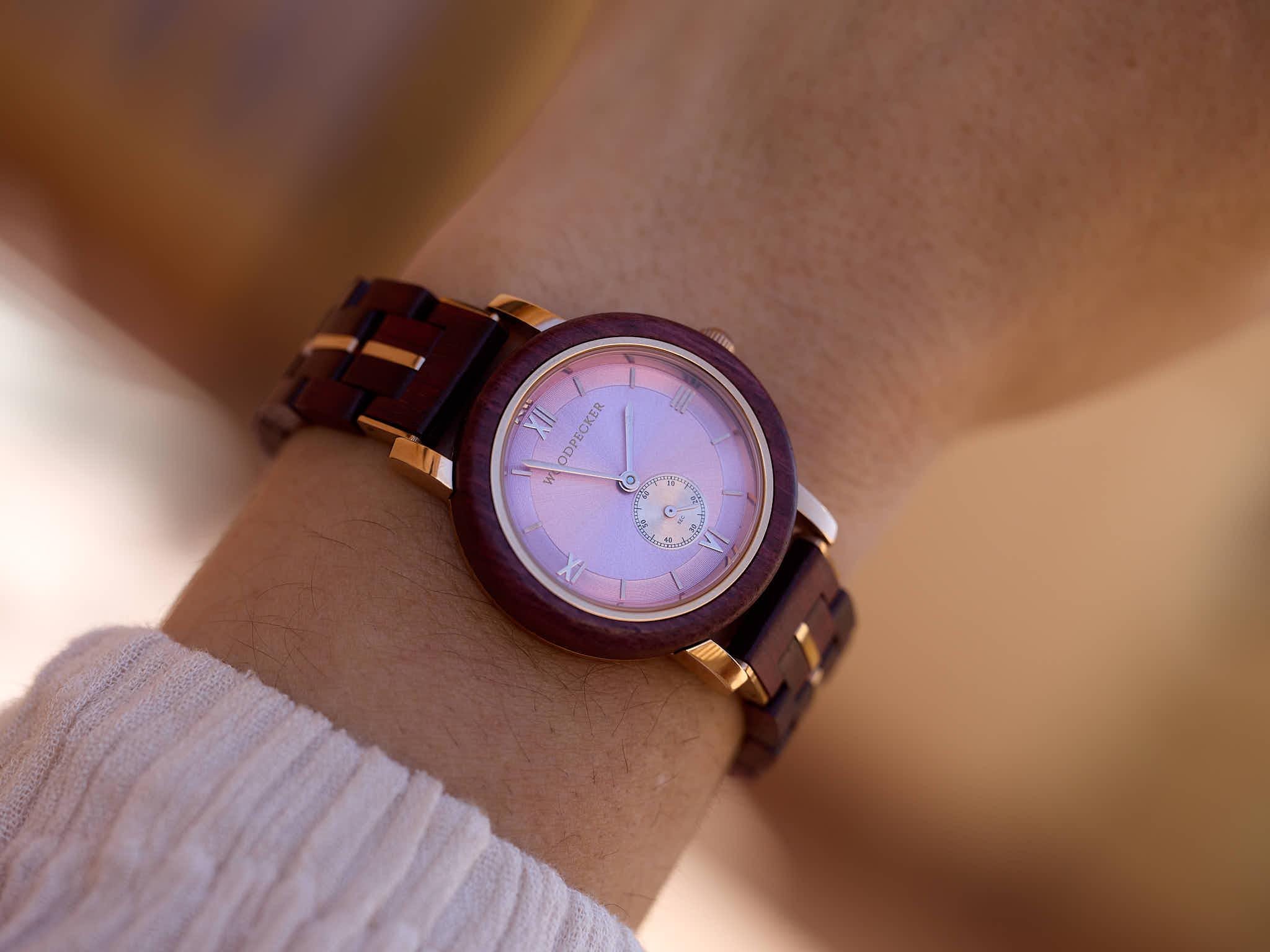 This watch merges timeless design with customization, making it an ideal choice for anyone who values quality and thoughtful gestures. The natural tones of Amaranth Wood pair seamlessly with its elegant finish, while its sentimental engraving options add a heartfelt touch.