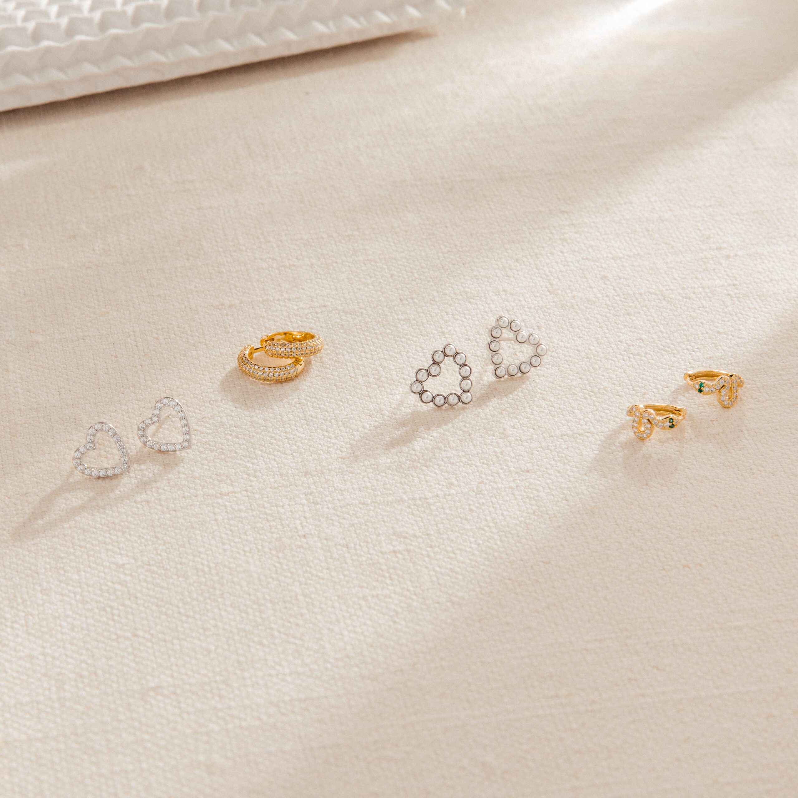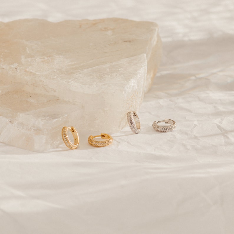 Elevate your date night outfit by adding a delicate sparkle with our Pave Huggies. The half-dome hoops are adorned in tiny diamonds, perfectly placed to hit the light and glisten with every turn.