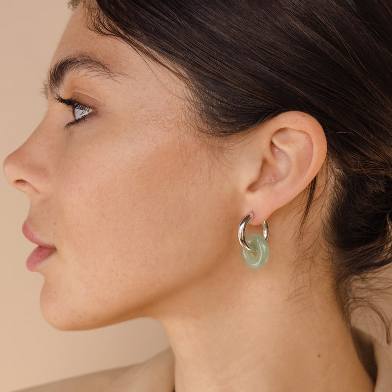 Chunky Jade Earrings by Caitlyn Minimalist • Green Jade Hoop Earrings • Statement Gemstone Earrings • Silver Jewelry • Mom Gift • ER302