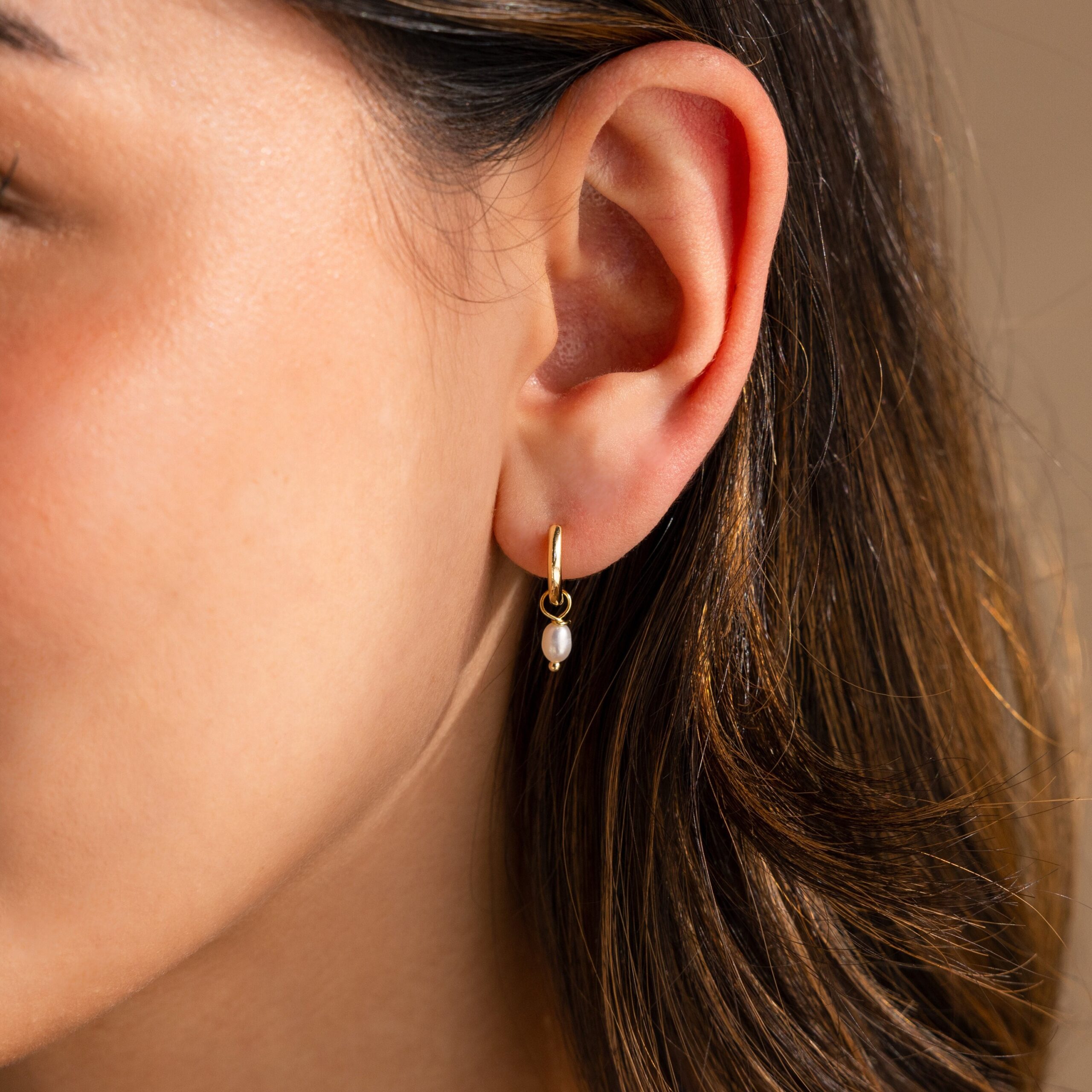 Our Dainty Pearl Huggie Hoops are the epitome of a perfect everyday earring. With a removable pearl charm, you can wear these hoop earrings in a multitude of ways creating uniqueness and versatility. Give these dangling gemstone earrings as a gift that is sure to put on smile on anyone’s face.