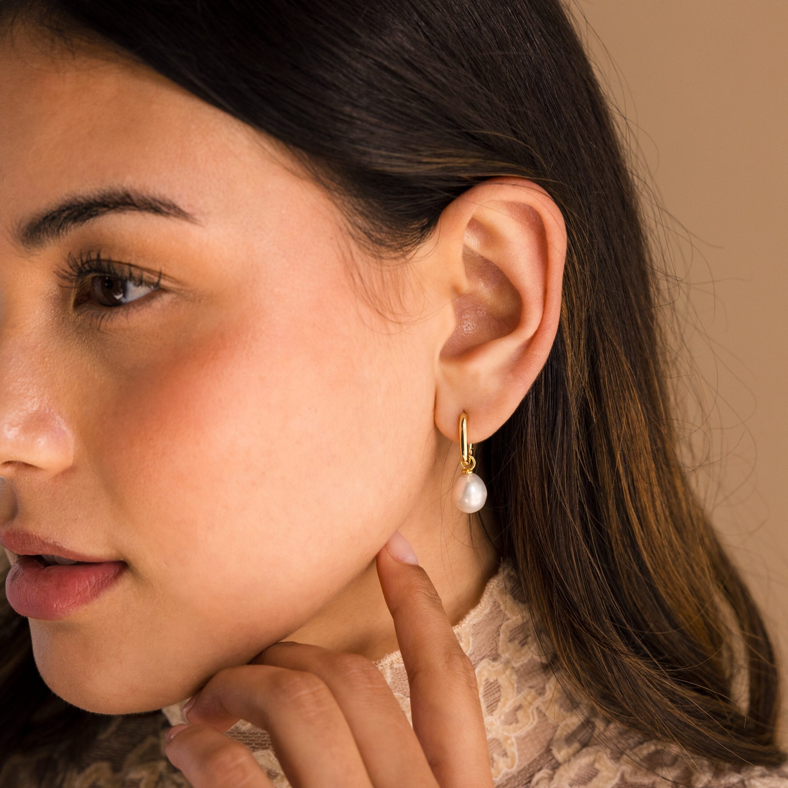 Radiate refined sophistication with our Dangling Freshwater Pearl Hoops, a symbol of purity and love. These pearl earrings add grace and classic charm to your everyday outfits. Adorn yourself in effortless elegance with every sway ✨