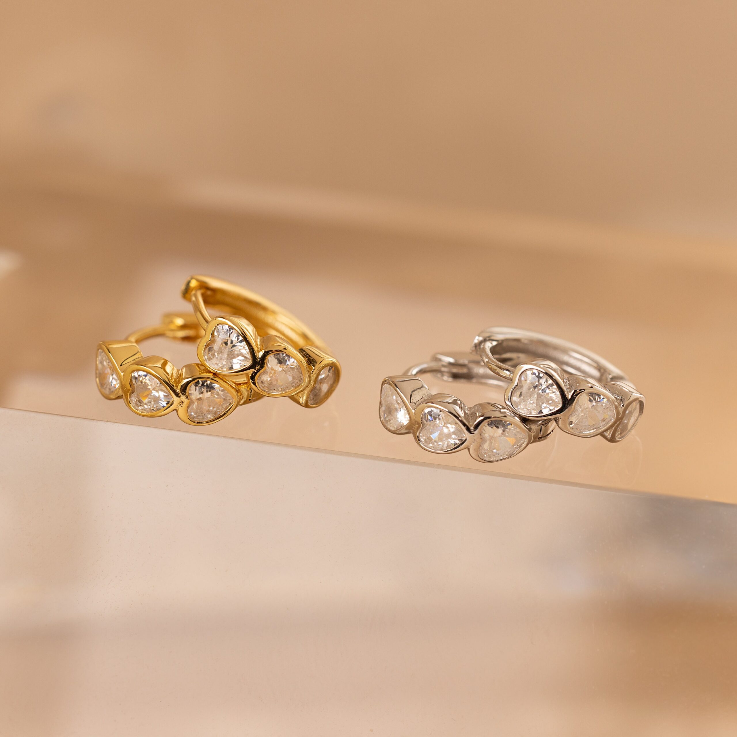 Diamond Bezel Heart Earrings by Caitlyn Minimalist • Dainty Heart Huggie Hoop Earrings, Perfect for Stacking • Jewelry Gift for Her • ER498
