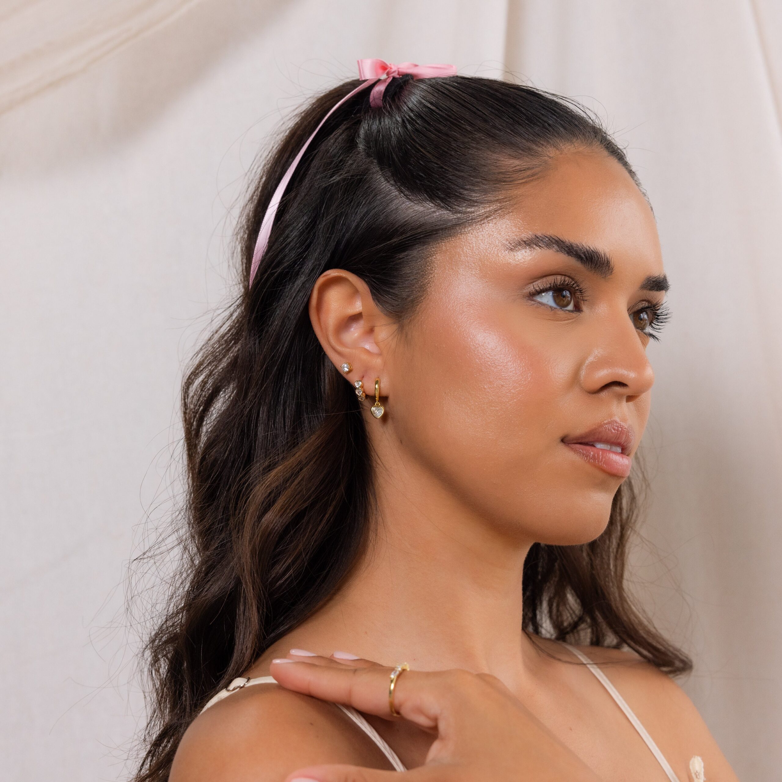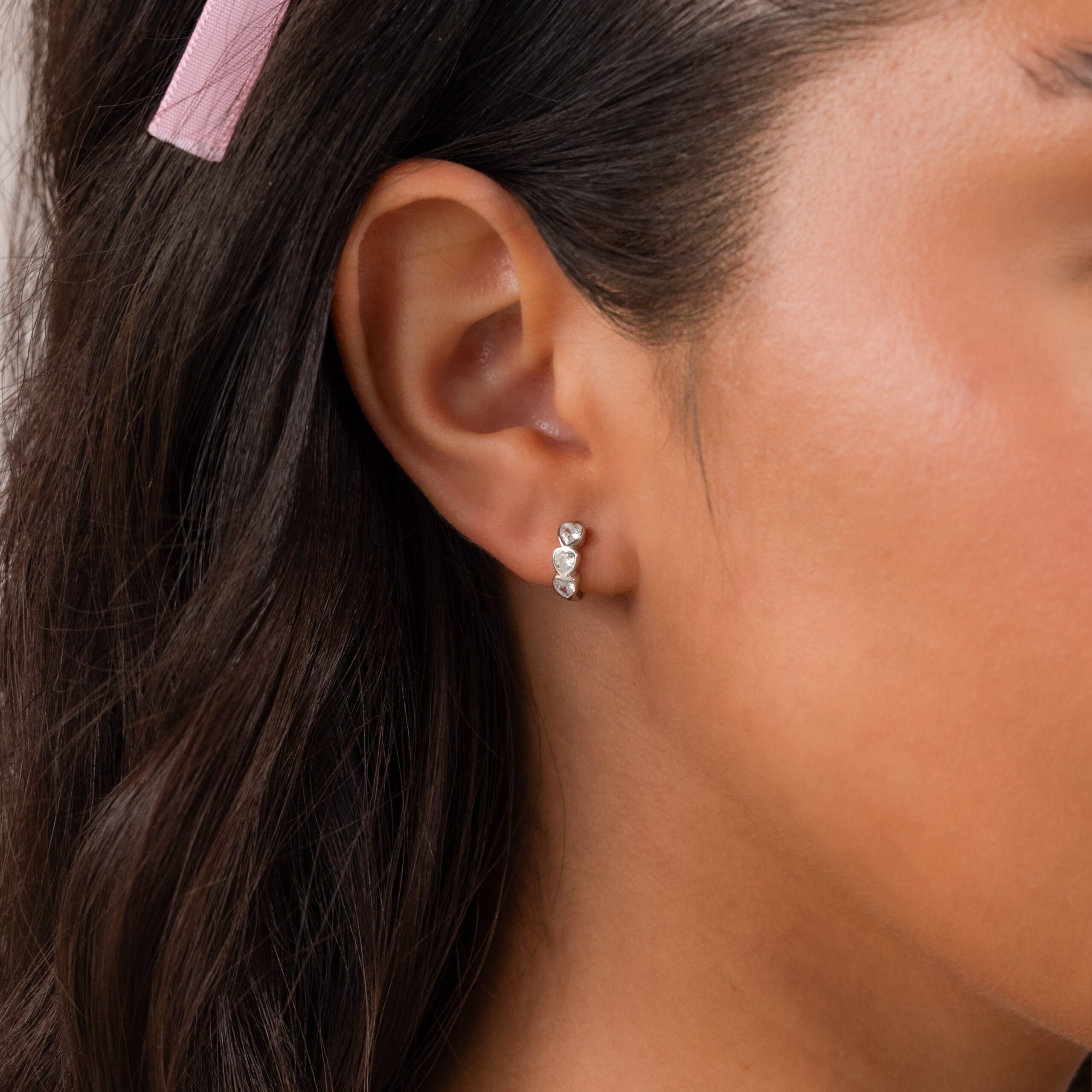 Our Diamond Bezel Heart Earrings feature glimmering diamond bezels set in a charming heart shape, a great choice if you want a flirty yet versatile pair of huggie earrings. Perfect for stacking, their class heart cut offers endless styling possibilities, allowing you to create your own unique and chic look with ease.