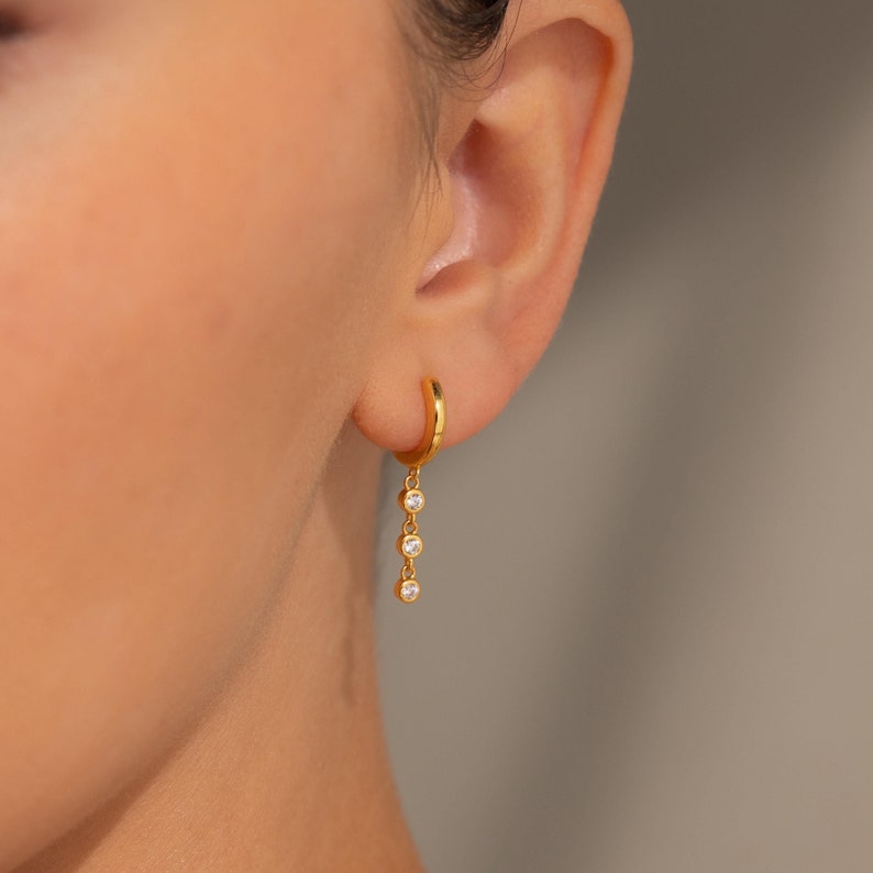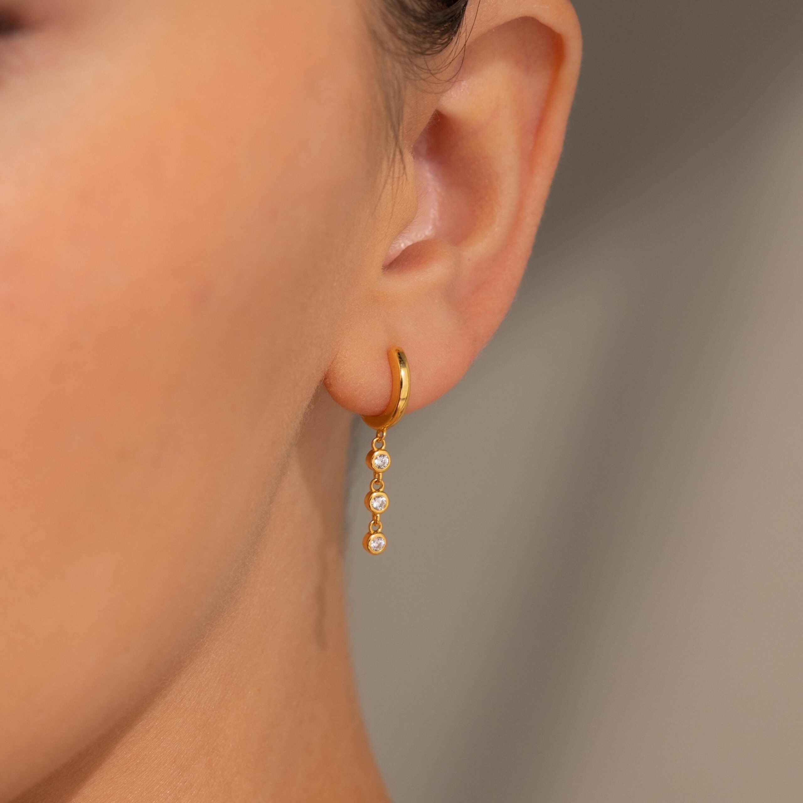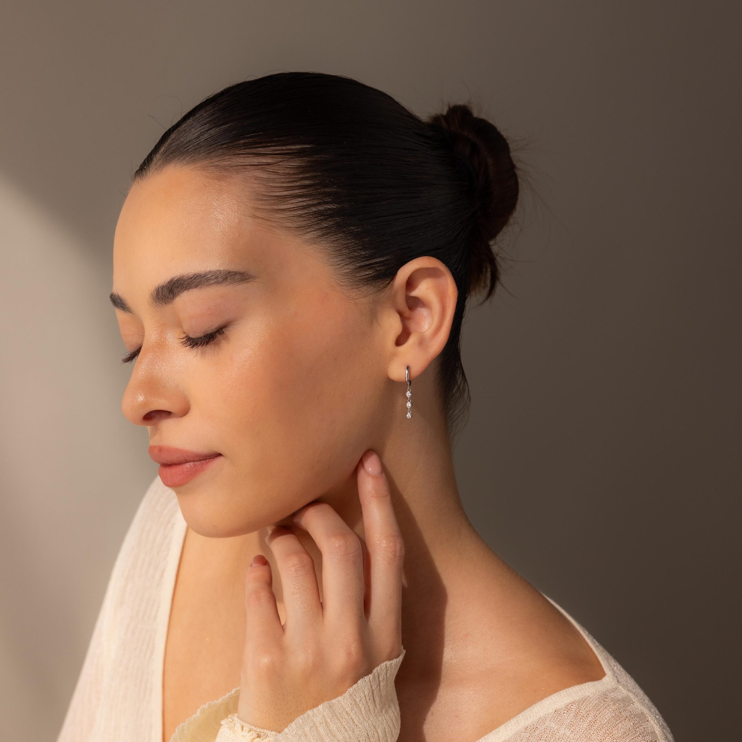 • Featuring ~26mm Dangling Chain Huggie Earrings with ~2mm CZ Diamond Gemstones | Sold as a Pair