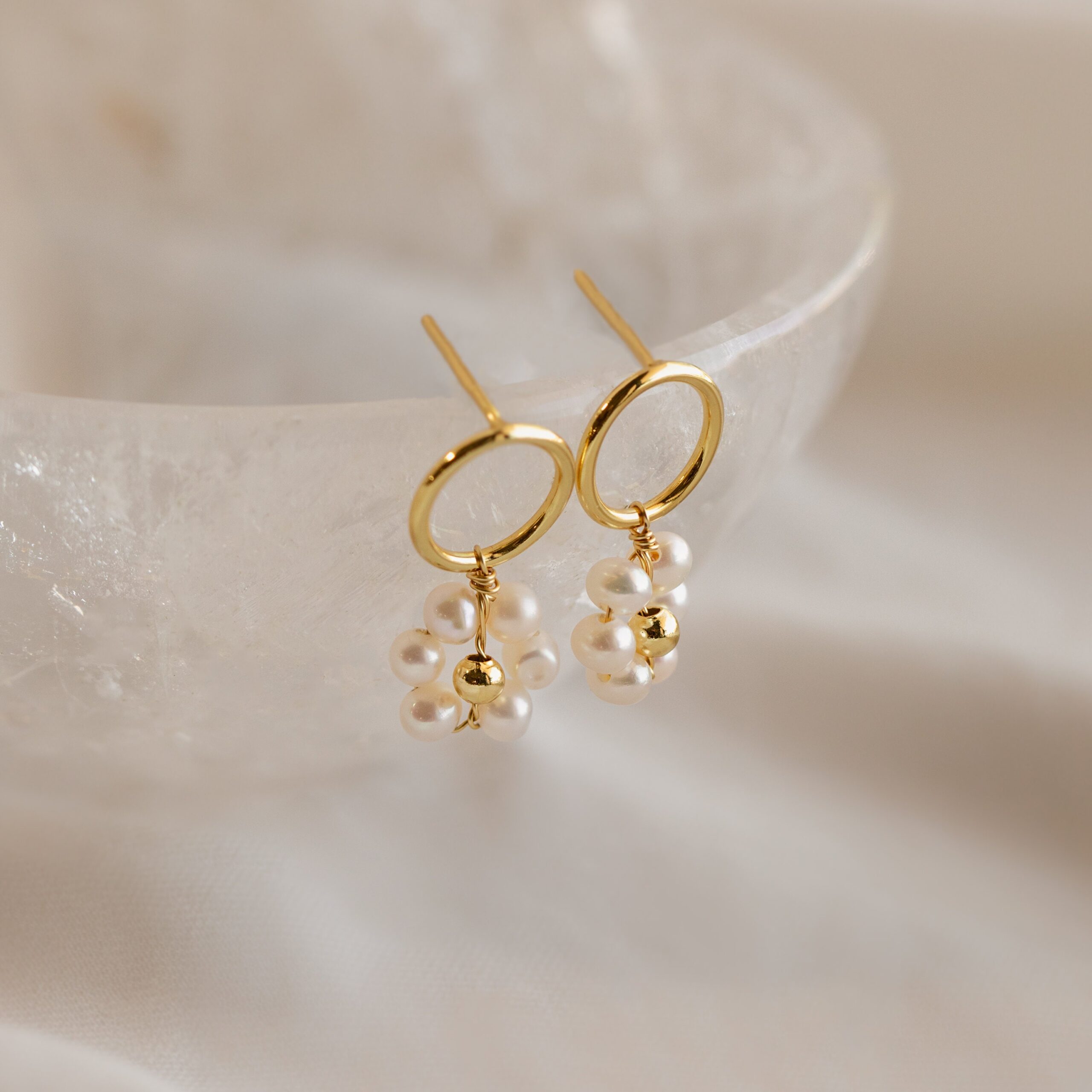 • Featuring ~9.5mm Pearl Flower Dangling Charm with a ~11mm Gold Circle Stud | Sold as a Pair