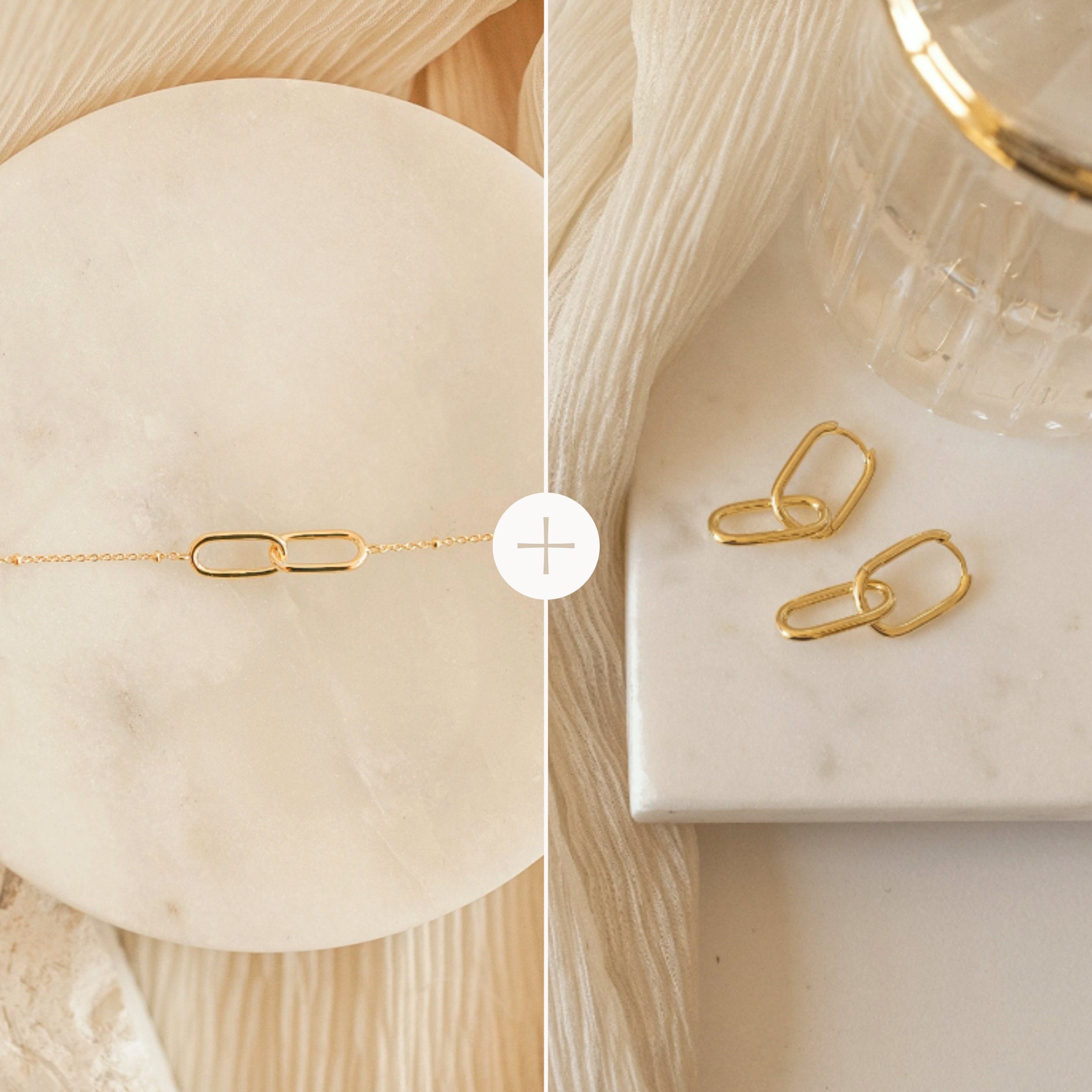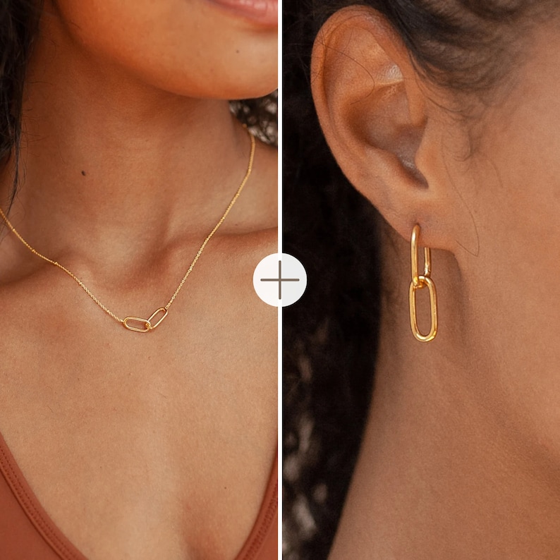 Style C Bundle Set of 2 Save 10%: Includes Dangle Link Hoop Earrings and Linked Pendant Necklace