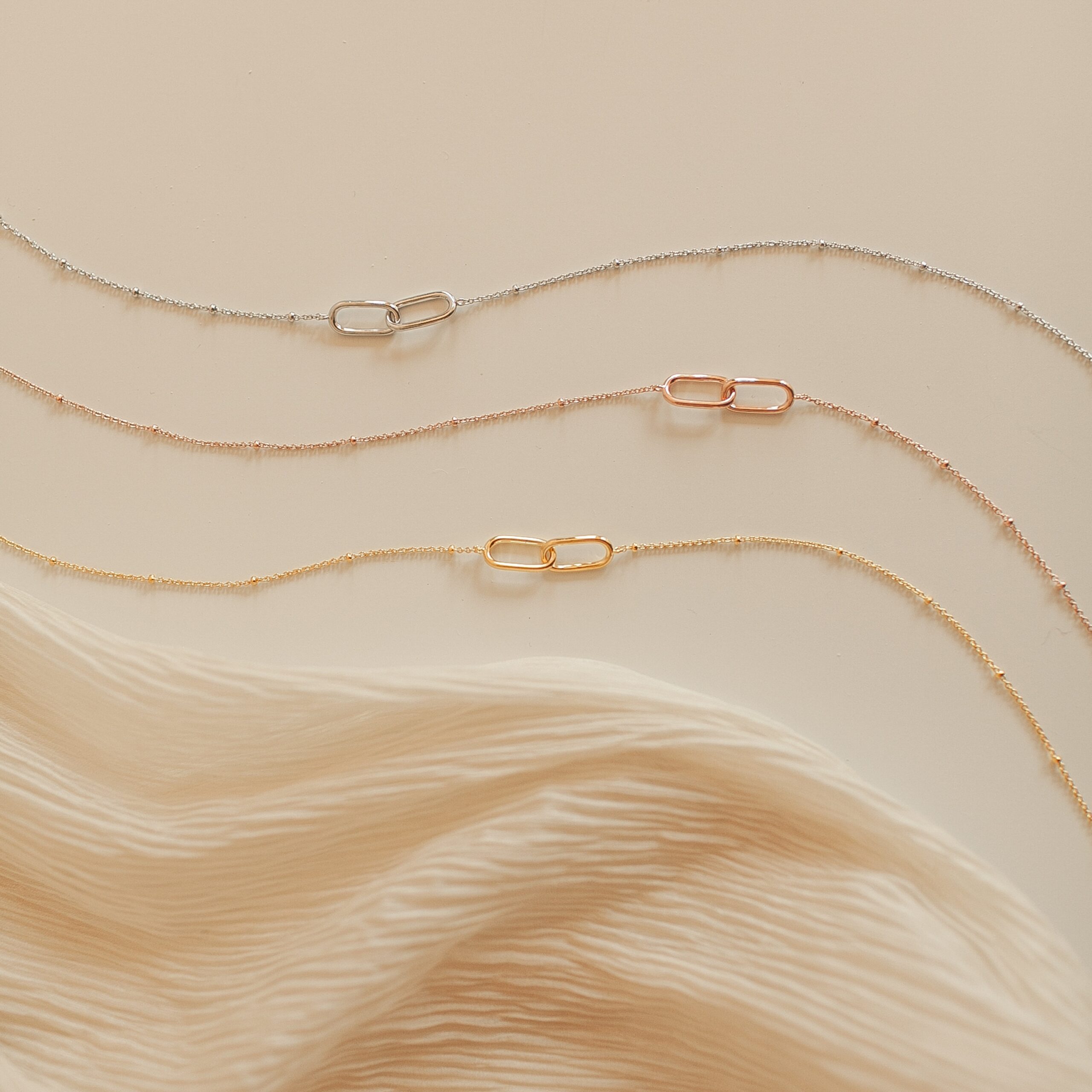 Style B Linked Pendant on a dainty Satellite Chain, adjustable from 16 to 18 inches
