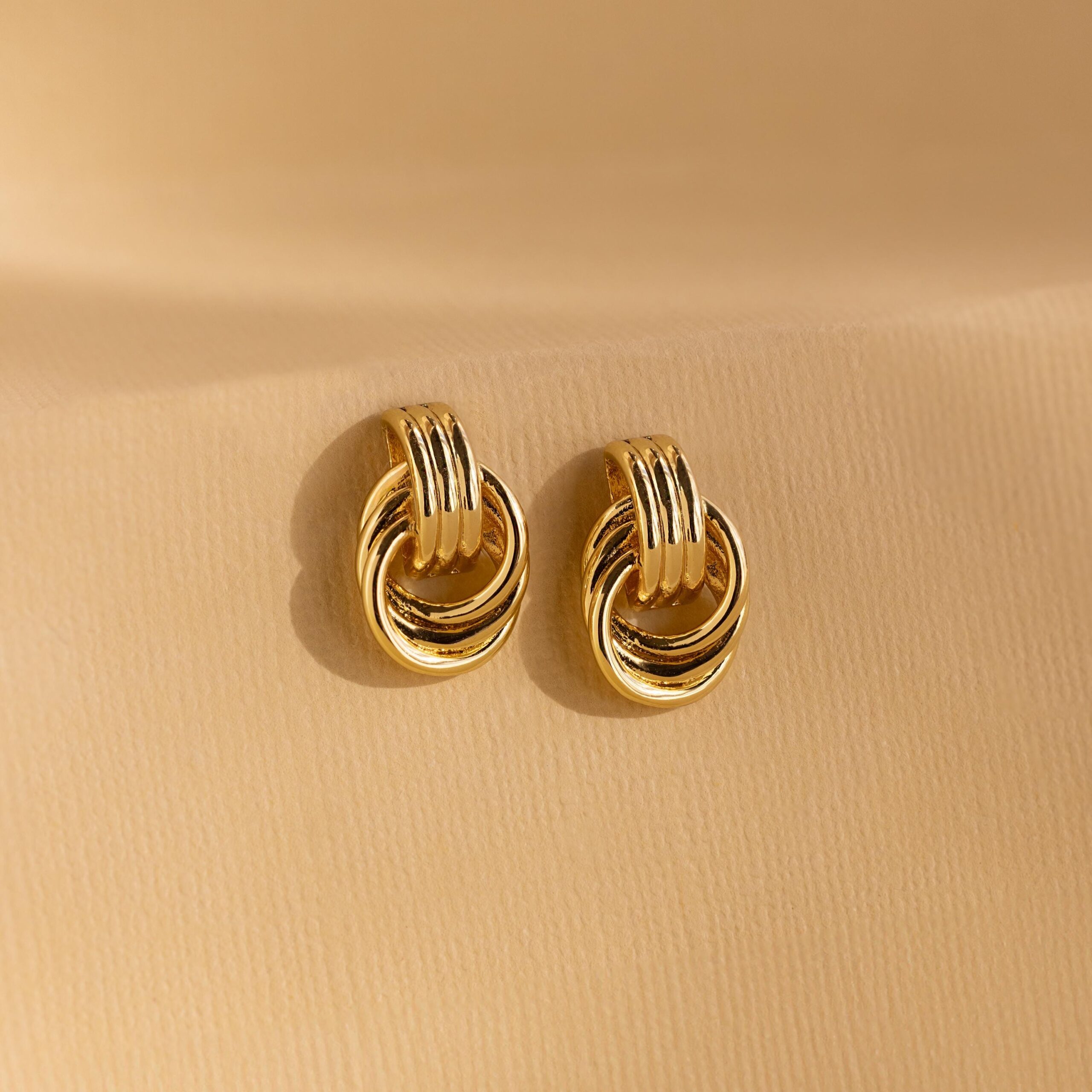 • Featuring dainty ~19x12mm Double Hoop Knot Stud Earrings | Sold as a Pair