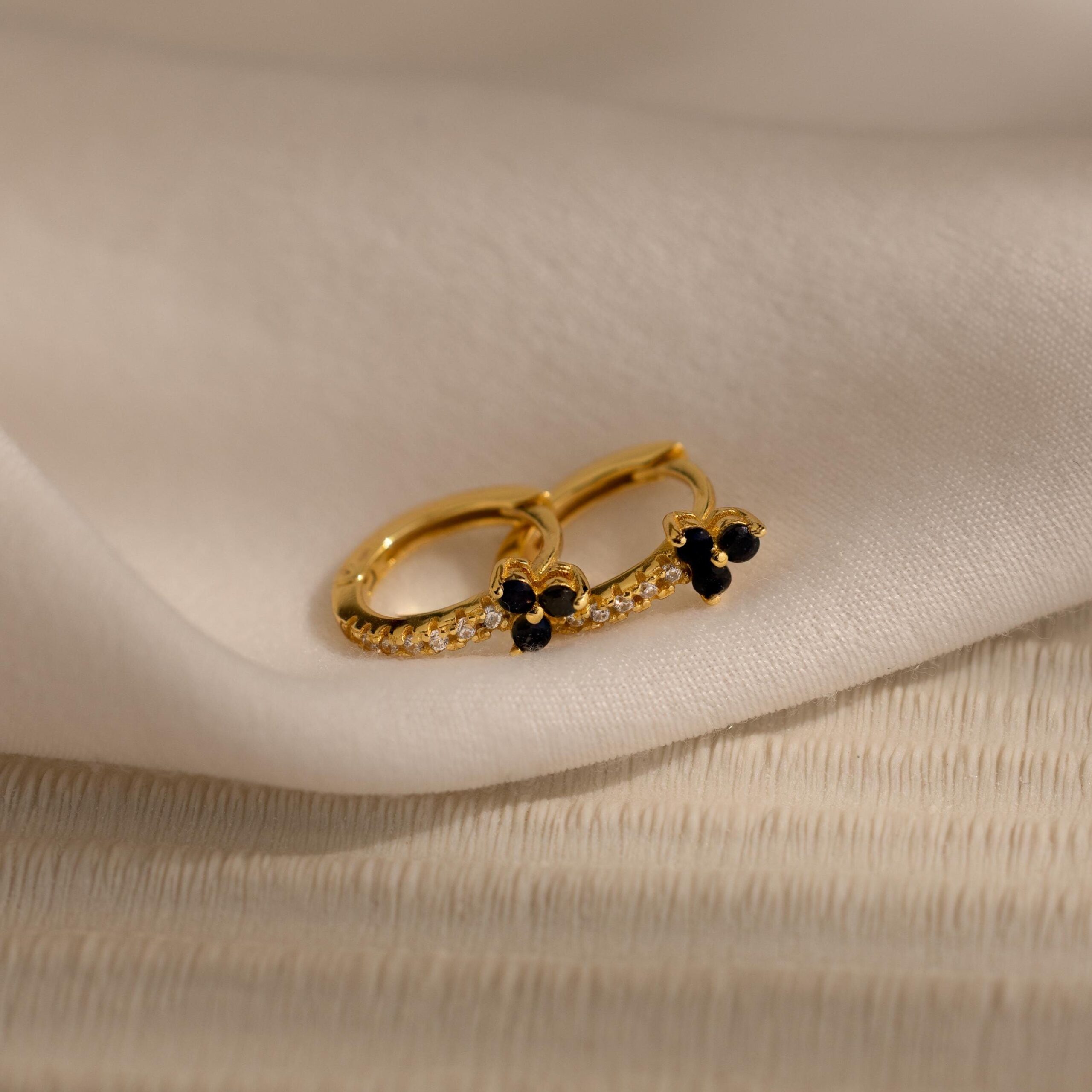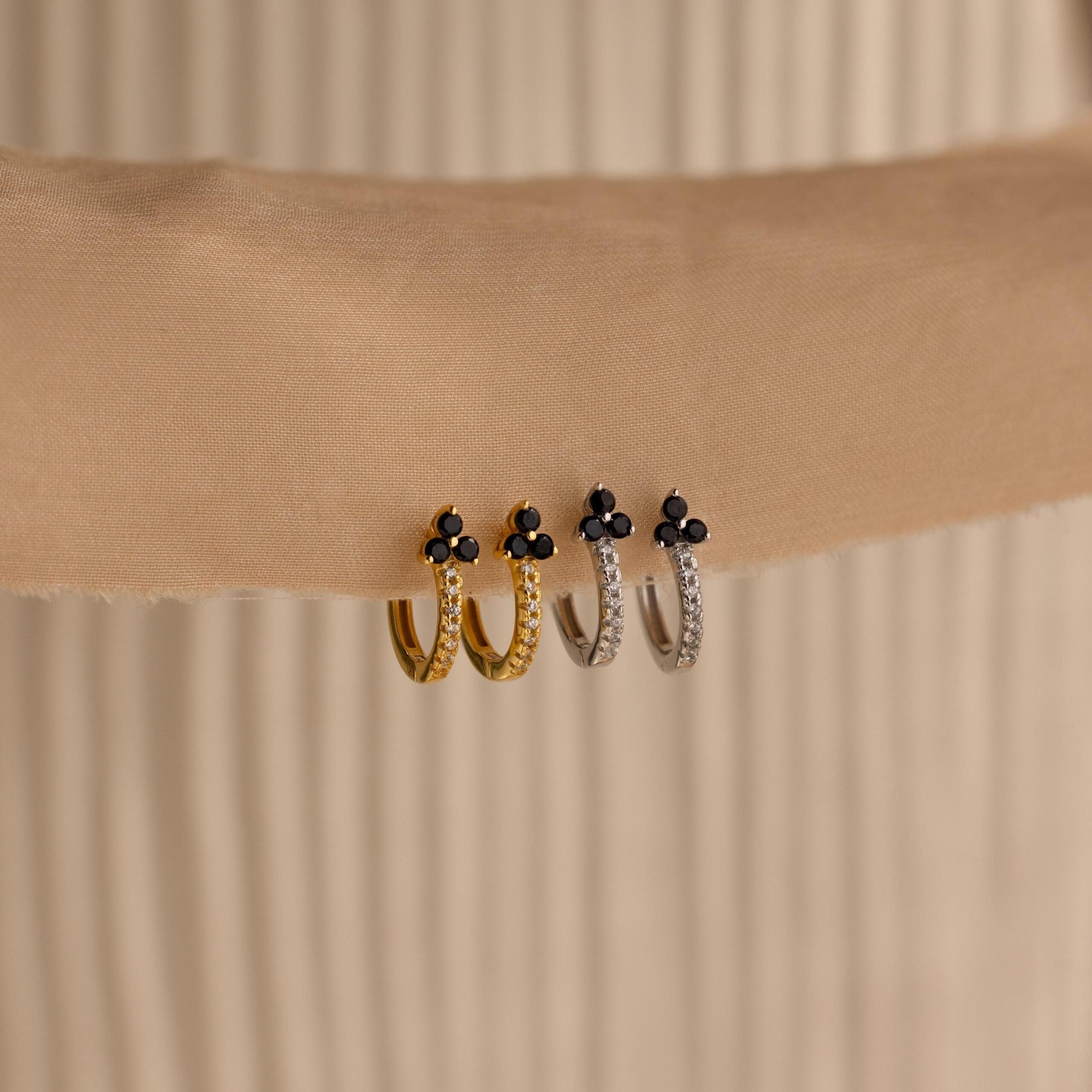 Elevate your style with our Onyx Clover Huggies, featuring sleek black onyx gemstones set in a delicate clover shape. Perfect for those looking to bring a little fortune and sophistication to their everyday look, these dainty hoops are a stylish addition to any jewelry collection ♡