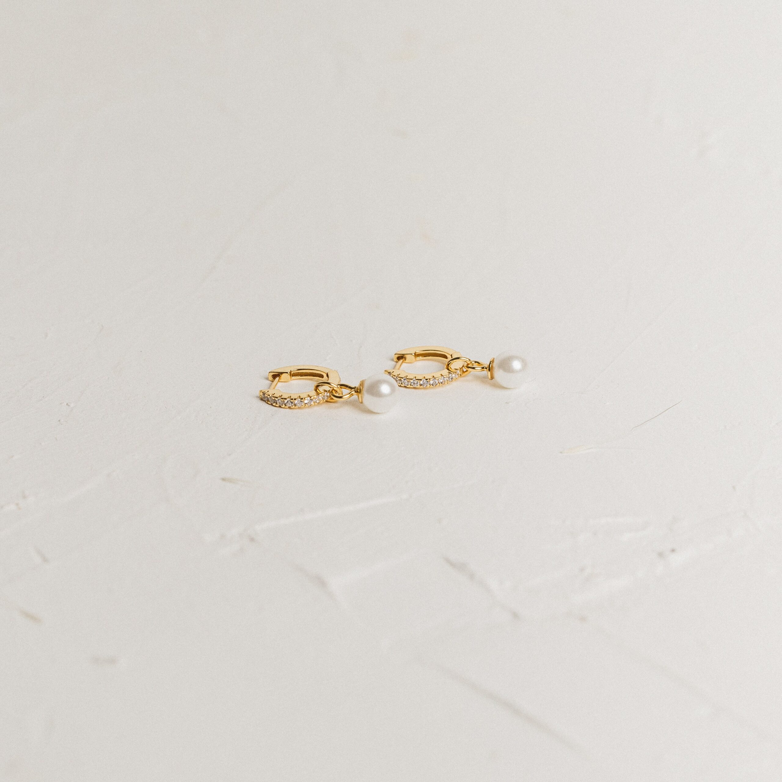 Pearl Drop Huggie Hoops by Caitlyn Minimalist • Diamond & Pearl Earrings • Pave Huggie Hoops • Bridesmaids Jewelry • Wedding Jewelry • ER026