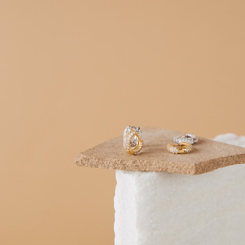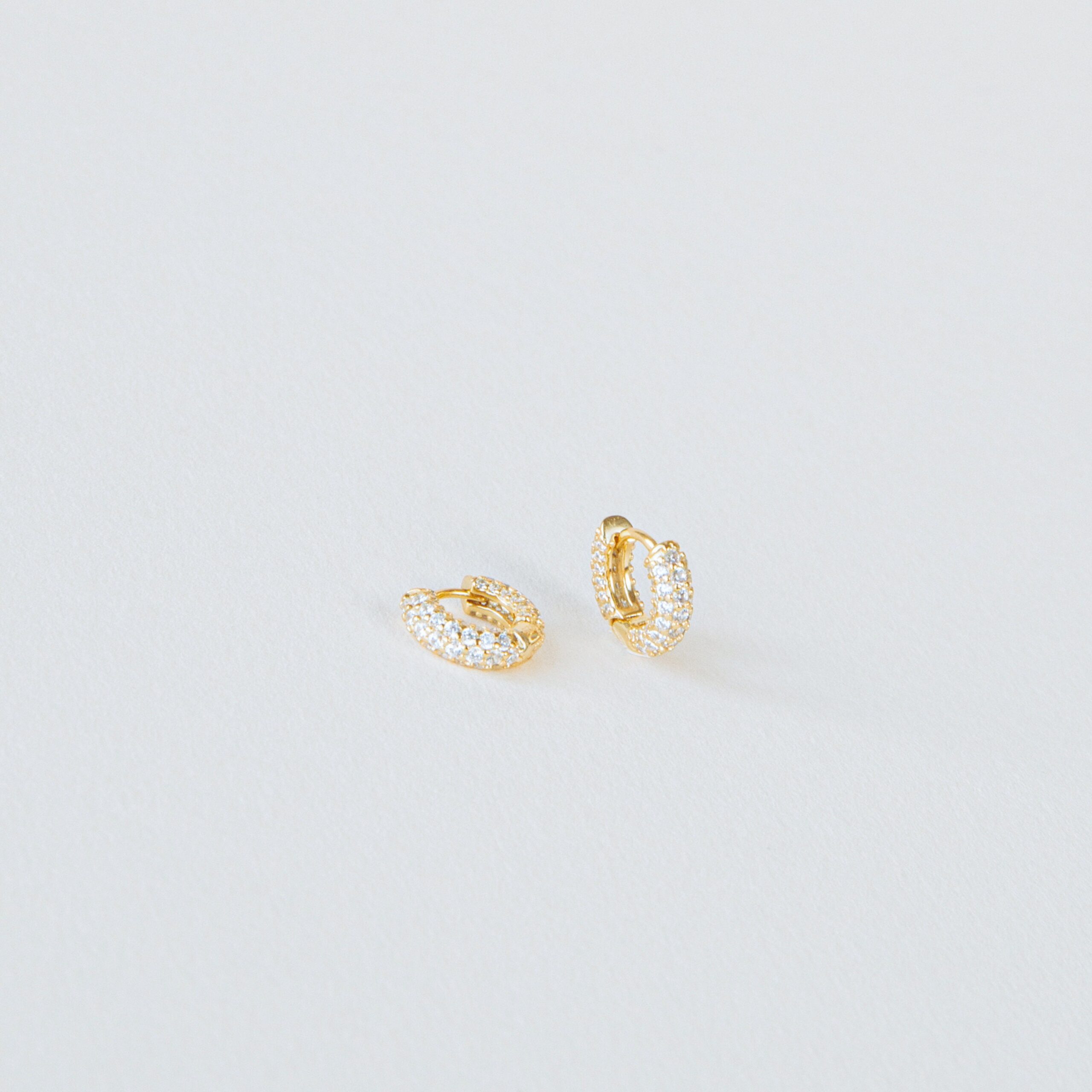 The Pave Huggies are the glammed-up best friend of our traditional metal huggies, and boy do they look it! If diamonds can be subtle, that’s what these hoops are.