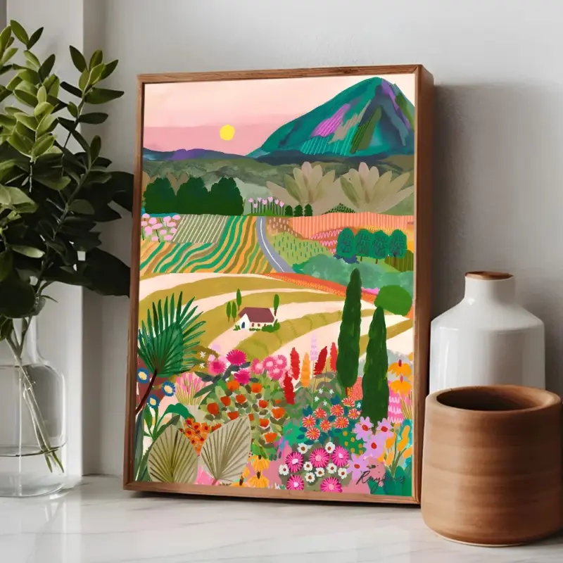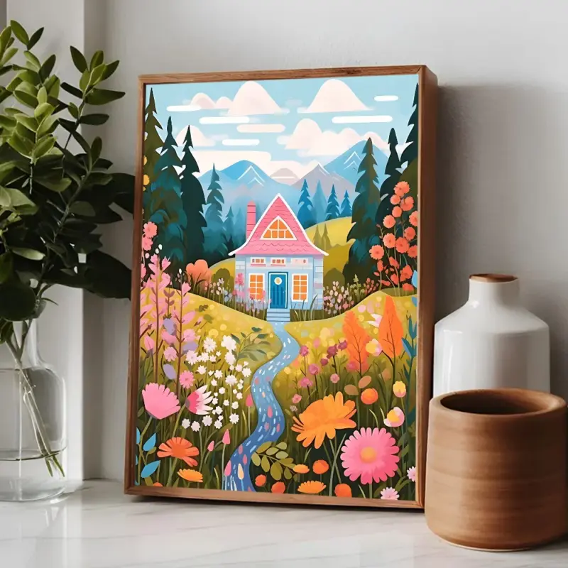 Be the first to review “Flowers Mountain Lake Colorful Poster”