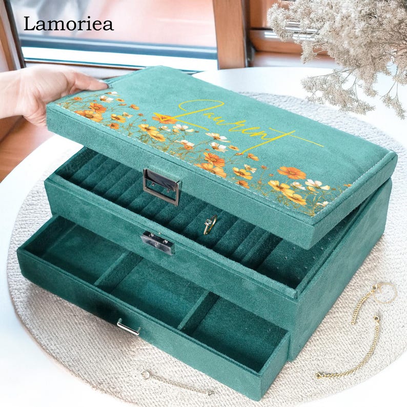 Custom Birth Flower Organizer Box, Womens Jewelry Box, Velvet Jewelry Gift Box, Girls Jewelry Box, Large Jewelry Storage, Girls Storage Box