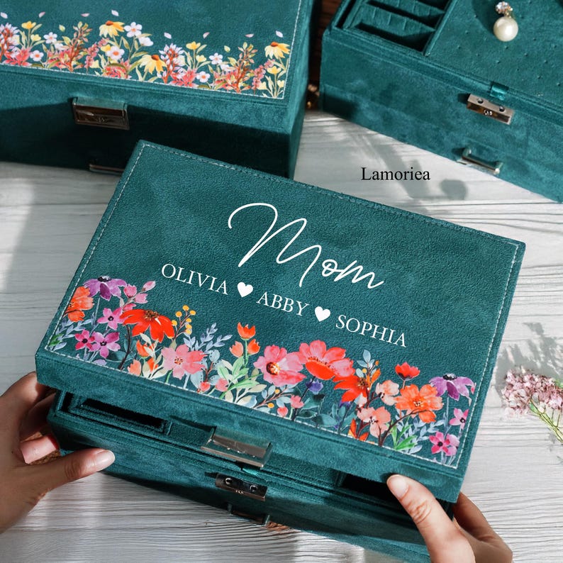 Custom Large Women Jewelry Box, Velvet Jewelry Organizer, Girl Box, Jewelry Storage Box, Gift for Mom, Gift for Her, Mother Day Gift [LM100]