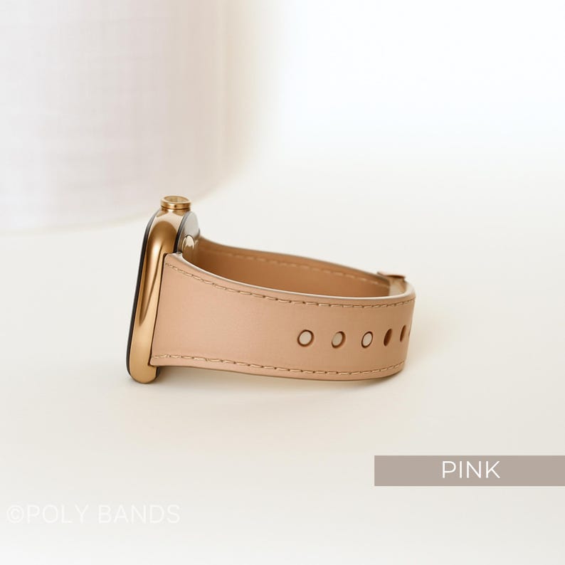 Slim Leather Apple Watch Band: Rose Gold Accent, Stitched Design