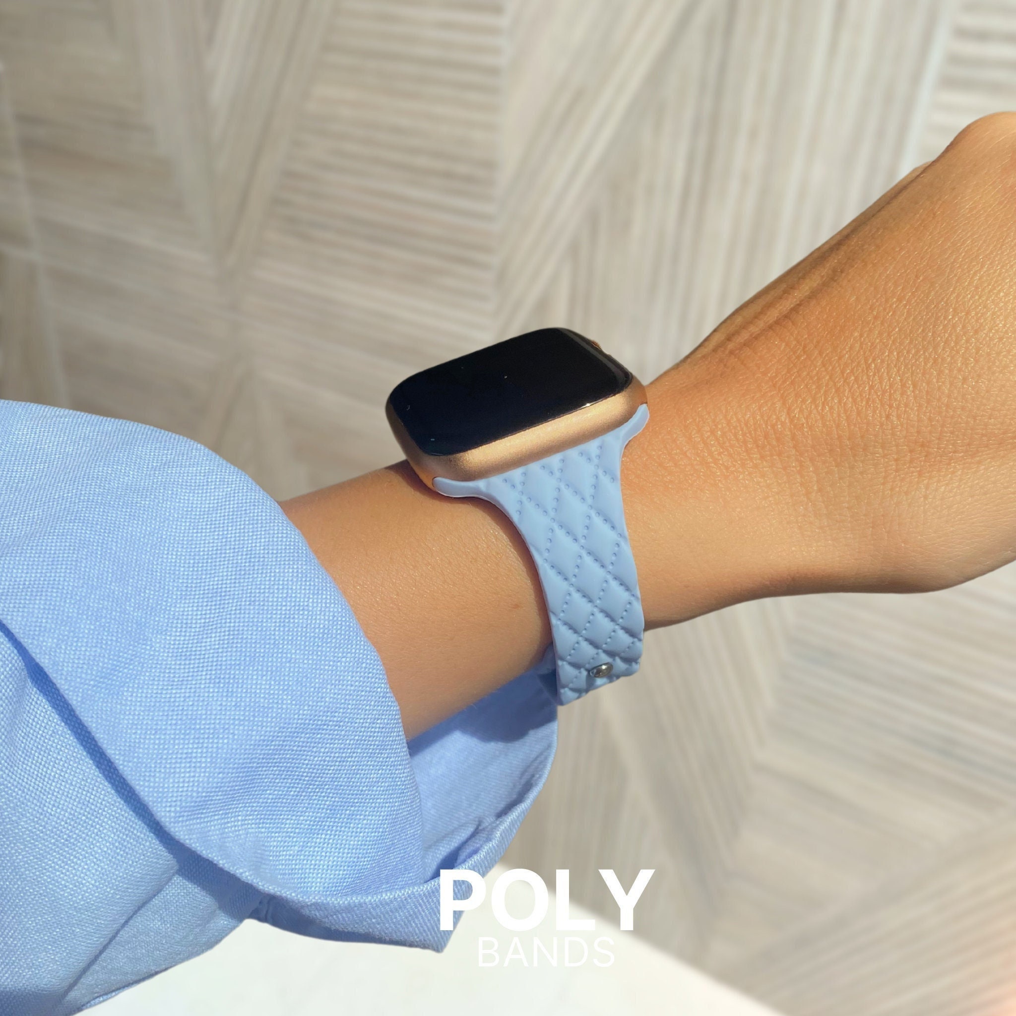 This slim silicone Apple Watch band offers a sleek, comfortable fit with a stylish quilted pattern. The durable, flexible material is perfect for daily wear, and the adjustable strap ensures a secure fit for any wrist size. Ideal for both casual and active lifestyles.