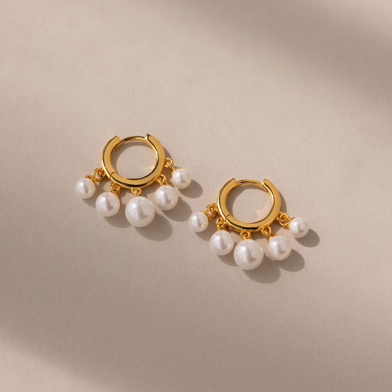 Beaded Pearl Chandelier Earrings by Caitlyn Minimalist • Dangling Pearl Hoop Earrings • Art Deco Jewelry • Bridesmaid Gift for Her • ER655