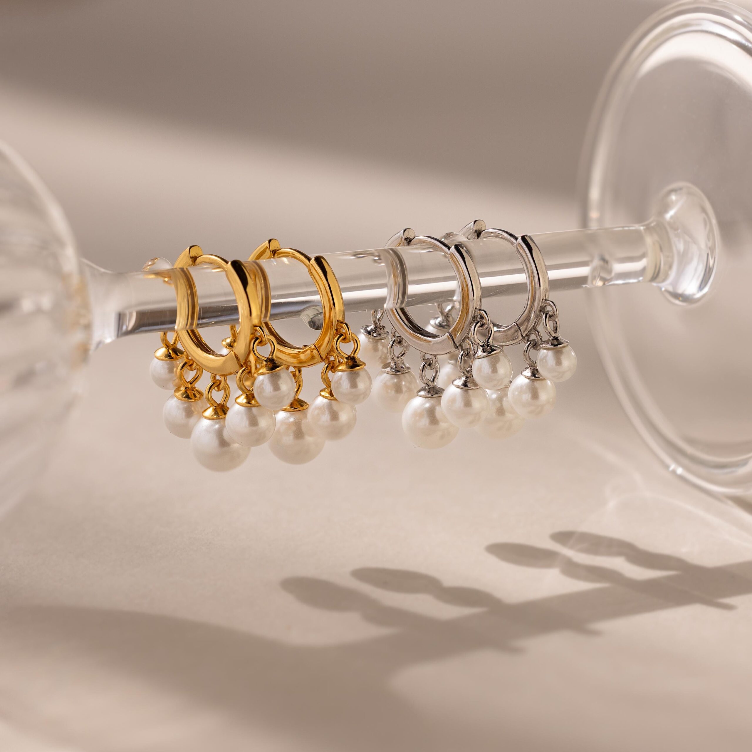 Elevate your everyday look with our Beaded Pearl Chandelier Earrings, featuring a row of lustrous pearl beads suspended from polished gold hoops. Their playful movement and timeless charm make them perfect for both special occasions and statement styling ♡