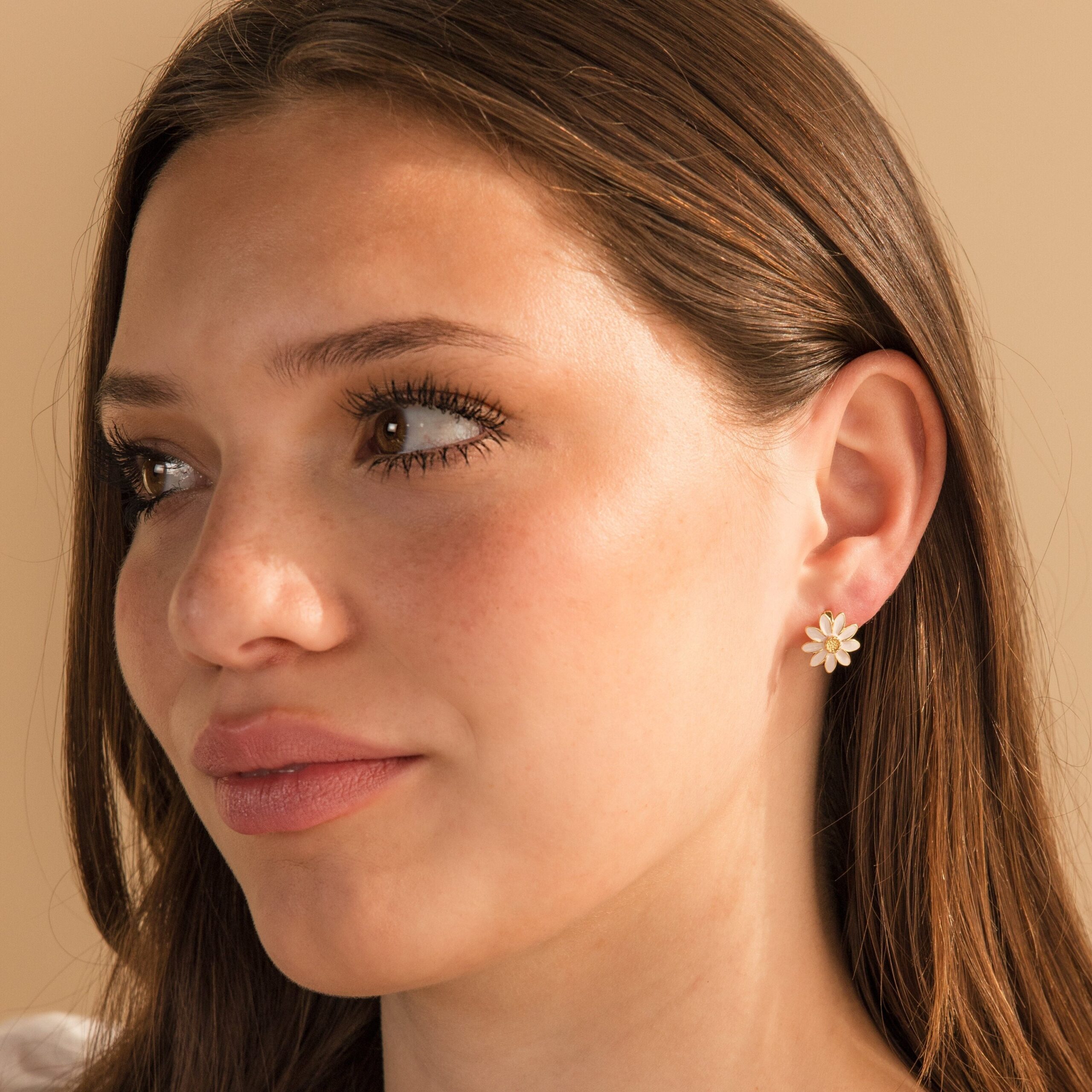 • Featuring Huggie Hoops with a ~12.5×12.5mm Bold Daisy Charm | Sold as a Pair