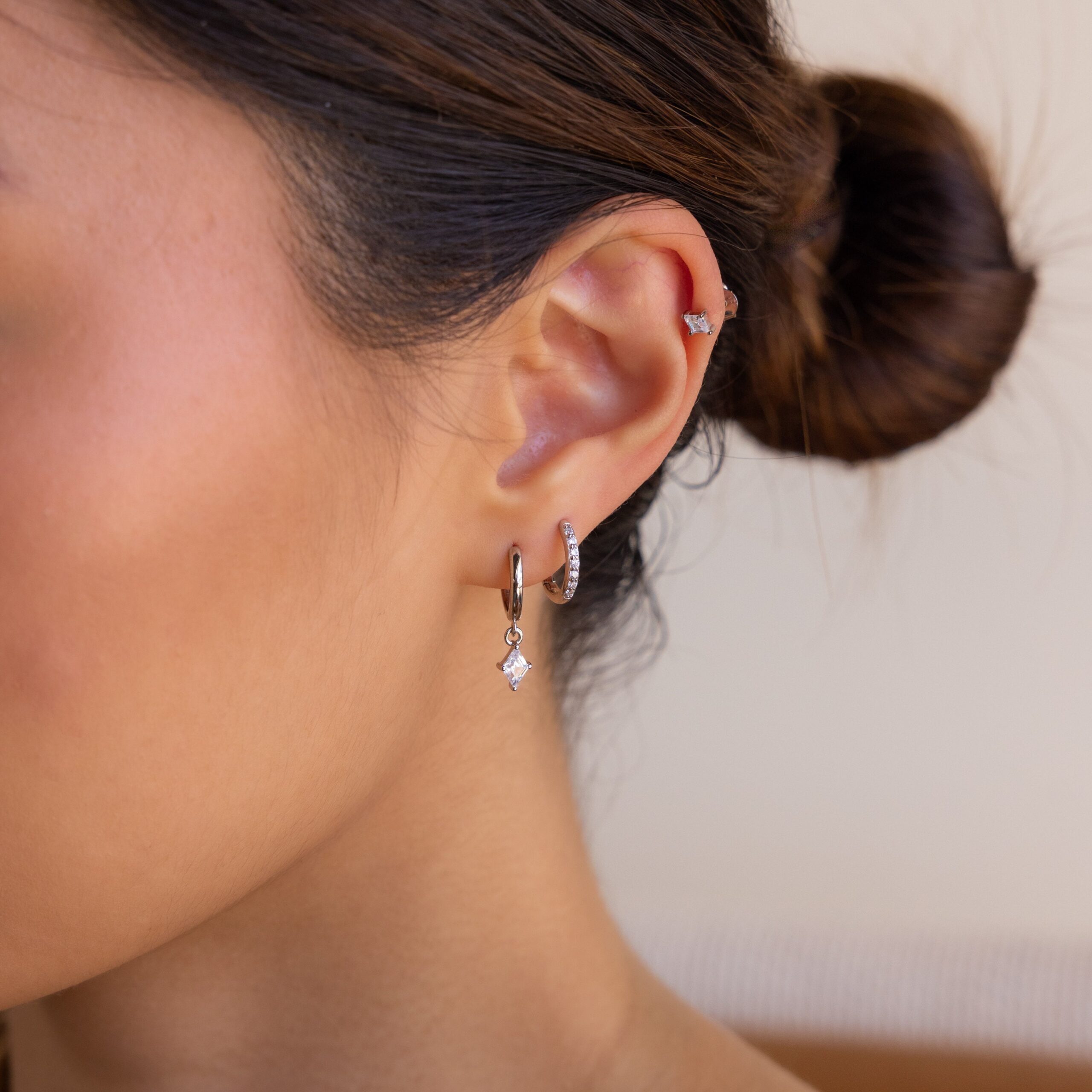 1 ~7x5mm Dangling Diamond Charm Huggie Hoop: ~8mm Inner Diameter | ~12.5mm Outer Diameter