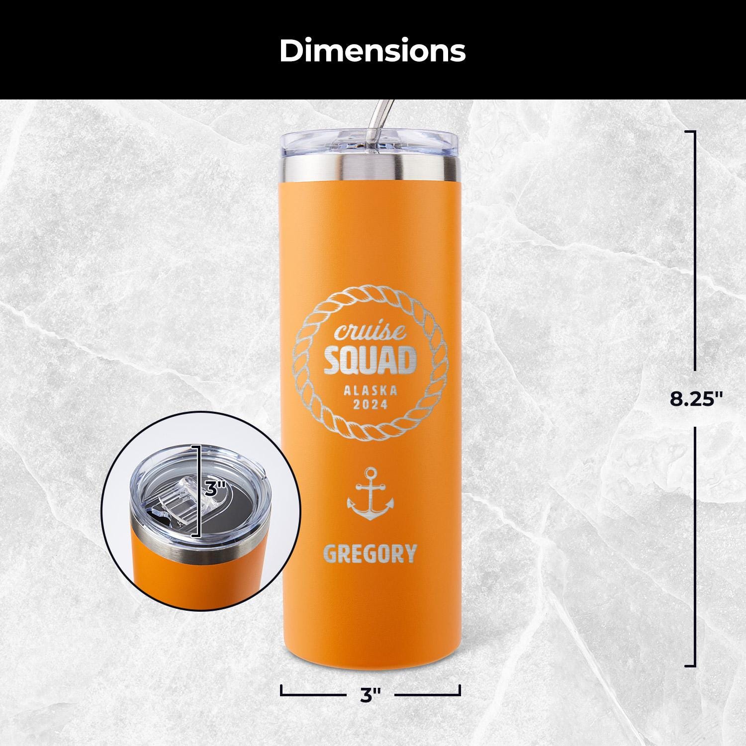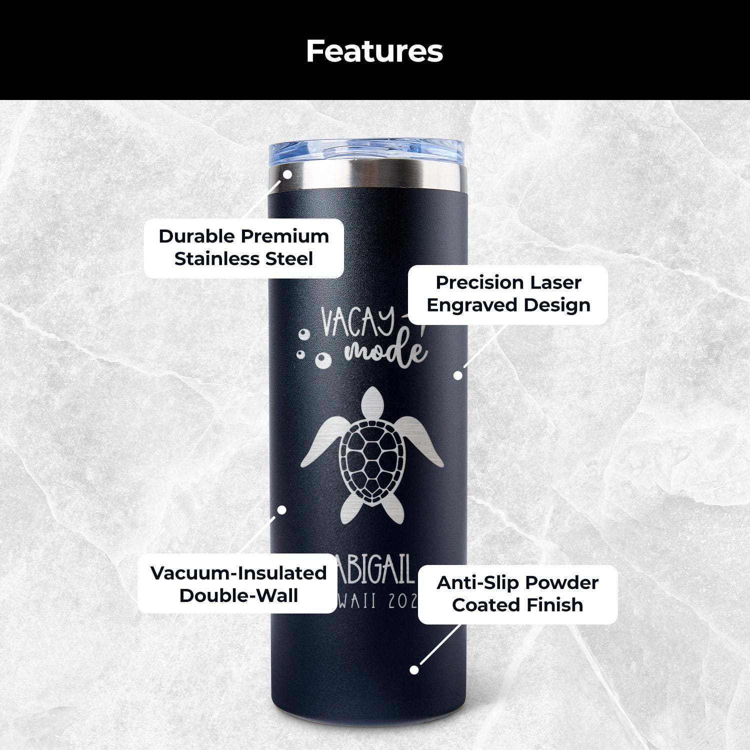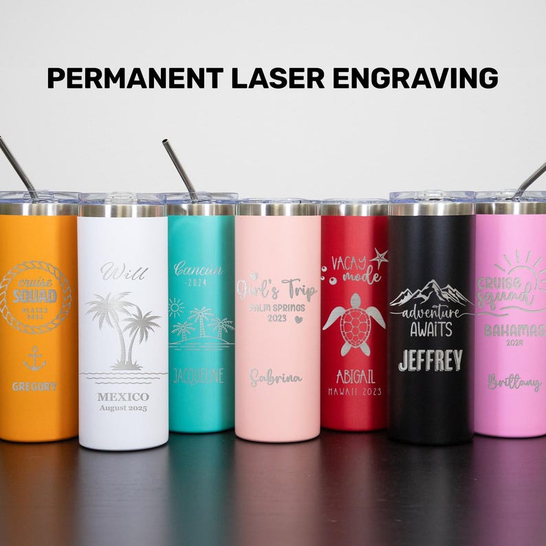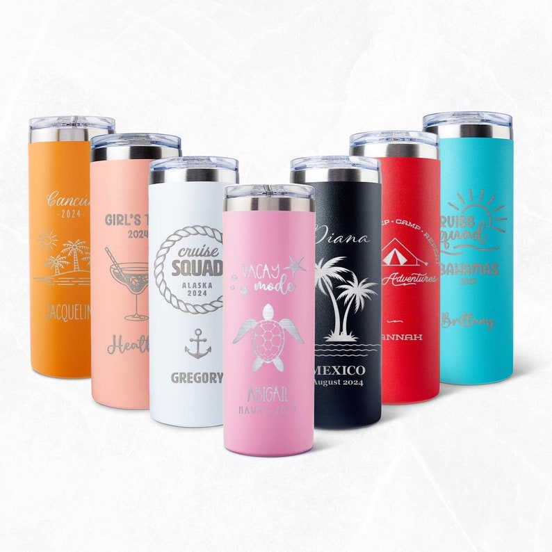 GAM Personalized Tumbler with Lid Straw Laser Engraved 20oz Custom Vacation Tumbler Skinny Tumbler, Personalized Gift, Custom Water Bottle