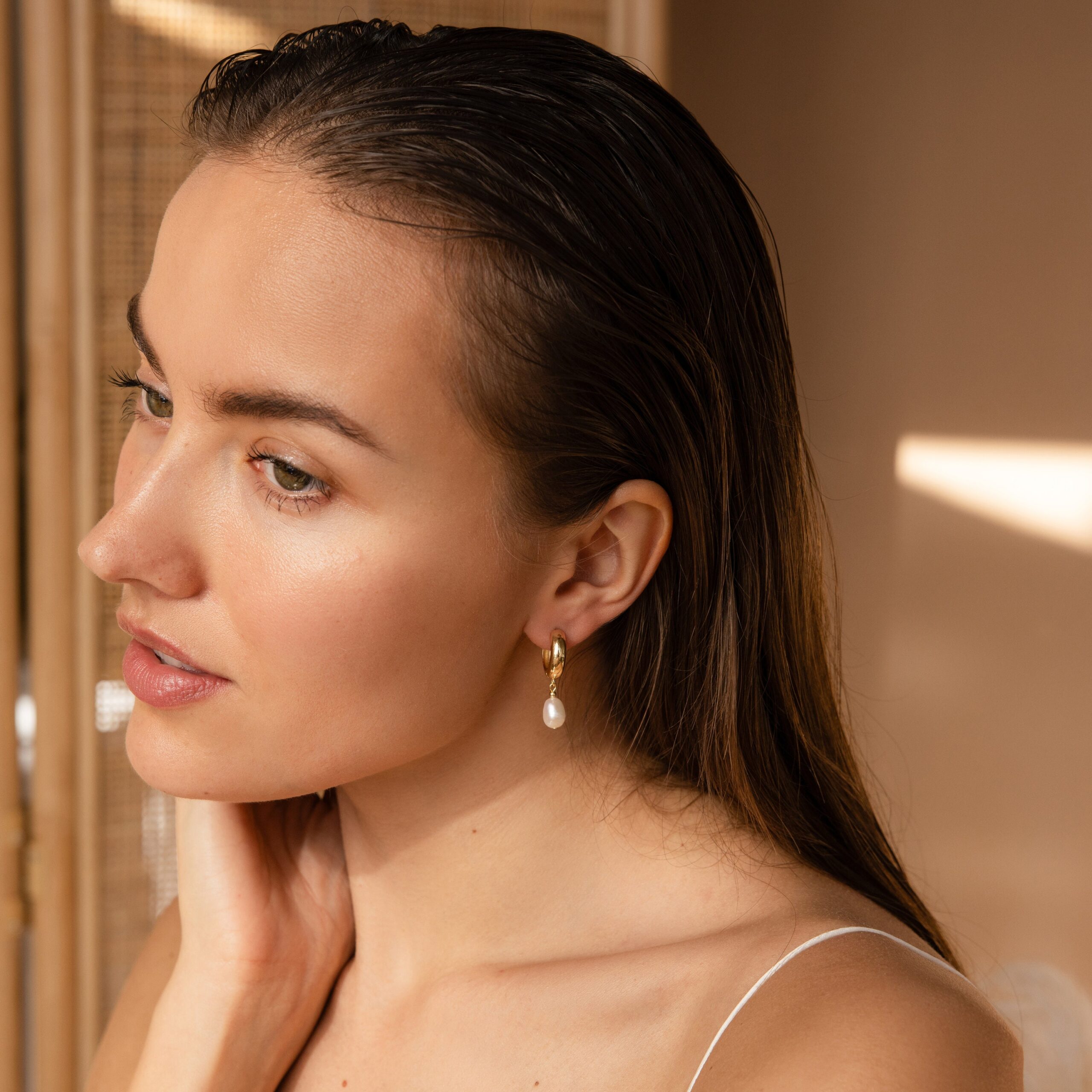 Nothing is better than the feeling of putting a new pair of graceful earrings on and starting your day fresh. Our Pearl Drop Huggie Earrings are the ones to do this with. A minimalist drop earring with a chunky hoop and dangling pearl stone is something you will want to wear every day, no matter the occasion.