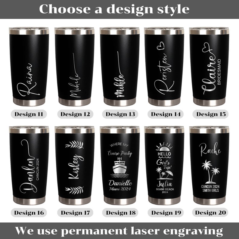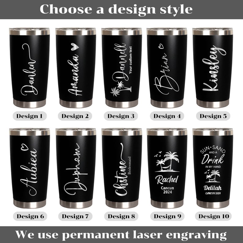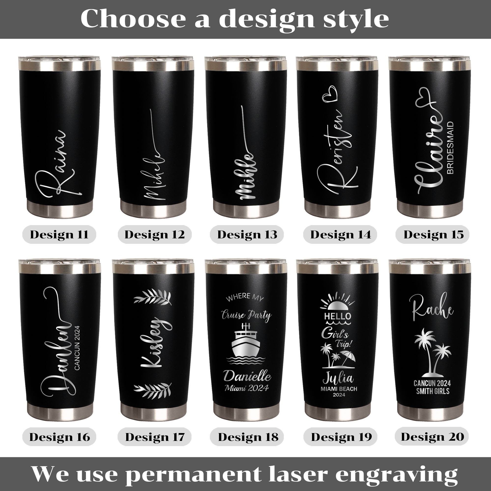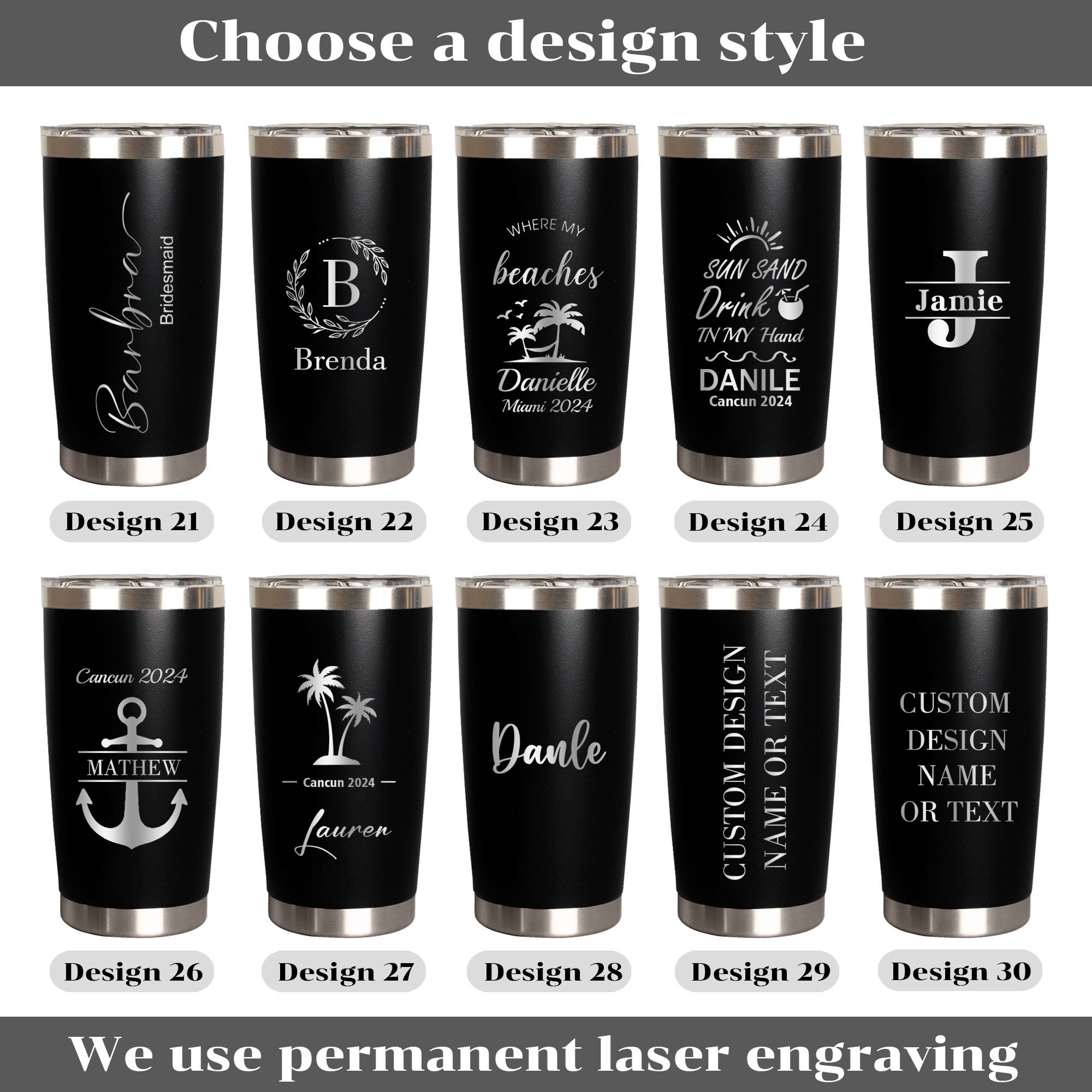 Personalized 20oz Engraved Tumbler, Custom Name Travel Mug, Stainless Steel Cups, Insulated Bridesmaid Tumbler, Tumbler with Straw