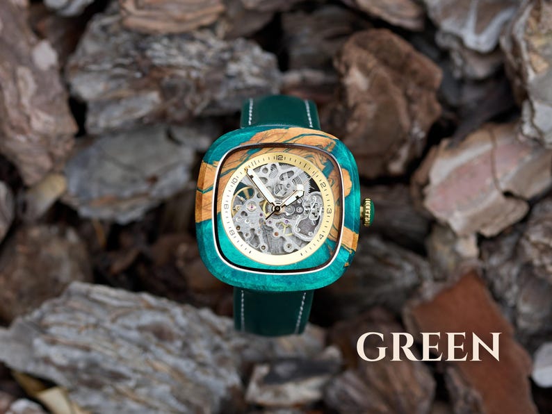 Looking for the perfect gift that’s both meaningful and stylish? This exquisite wooden watch combines the warm hues of olive wood with the sleek touch of resin for a one-of-a-kind timepiece. Featuring an automatic movement, this watch is as reliable as it is elegant, perfect for men who appreciate fine craftsmanship.