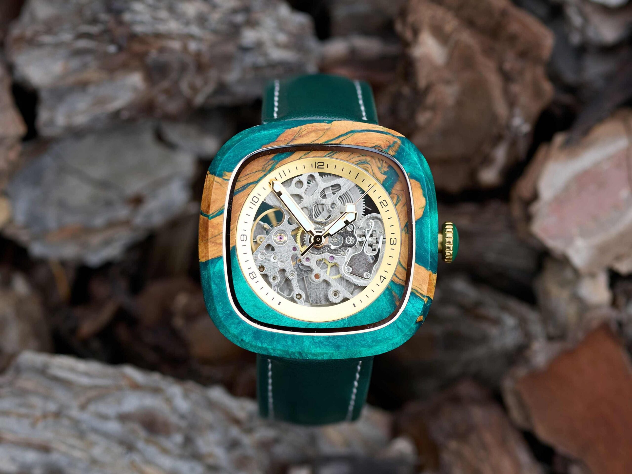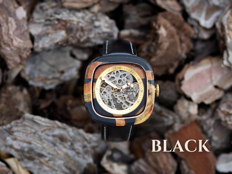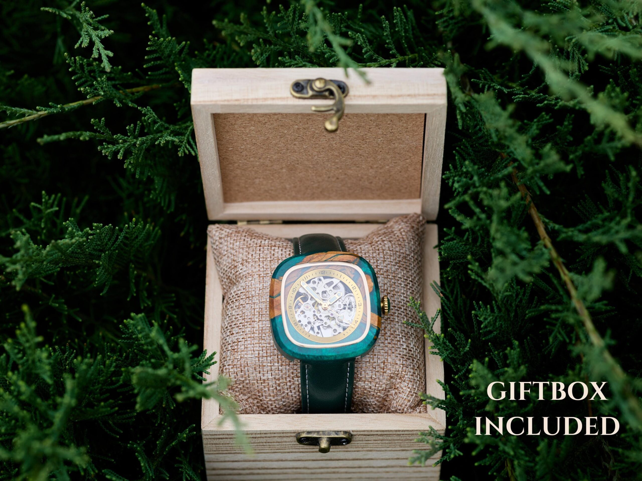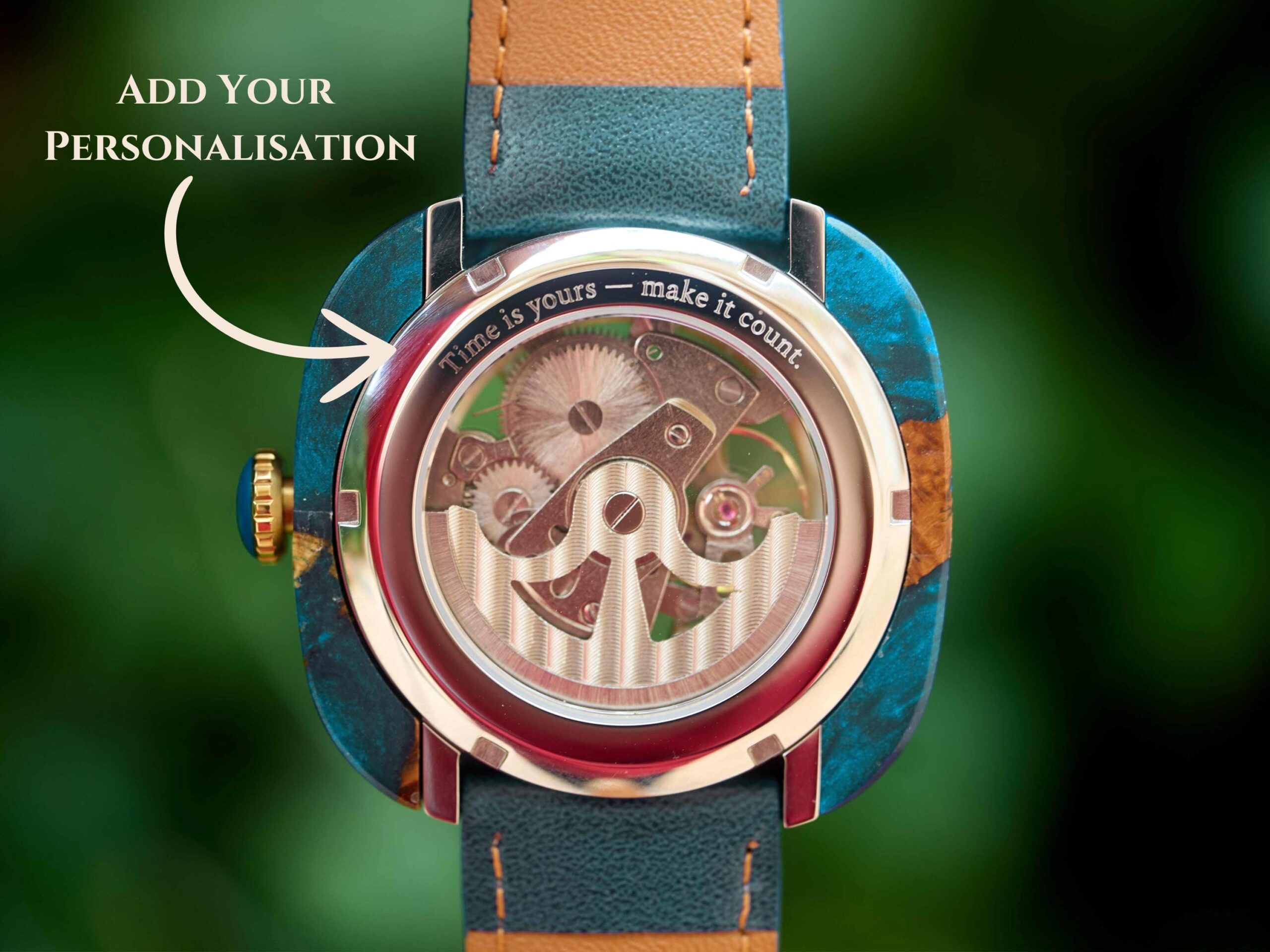 Custom Engraved Wooden Men’s Watch – Automatic Watch made of Wood and Resin and Personalisation on the Back